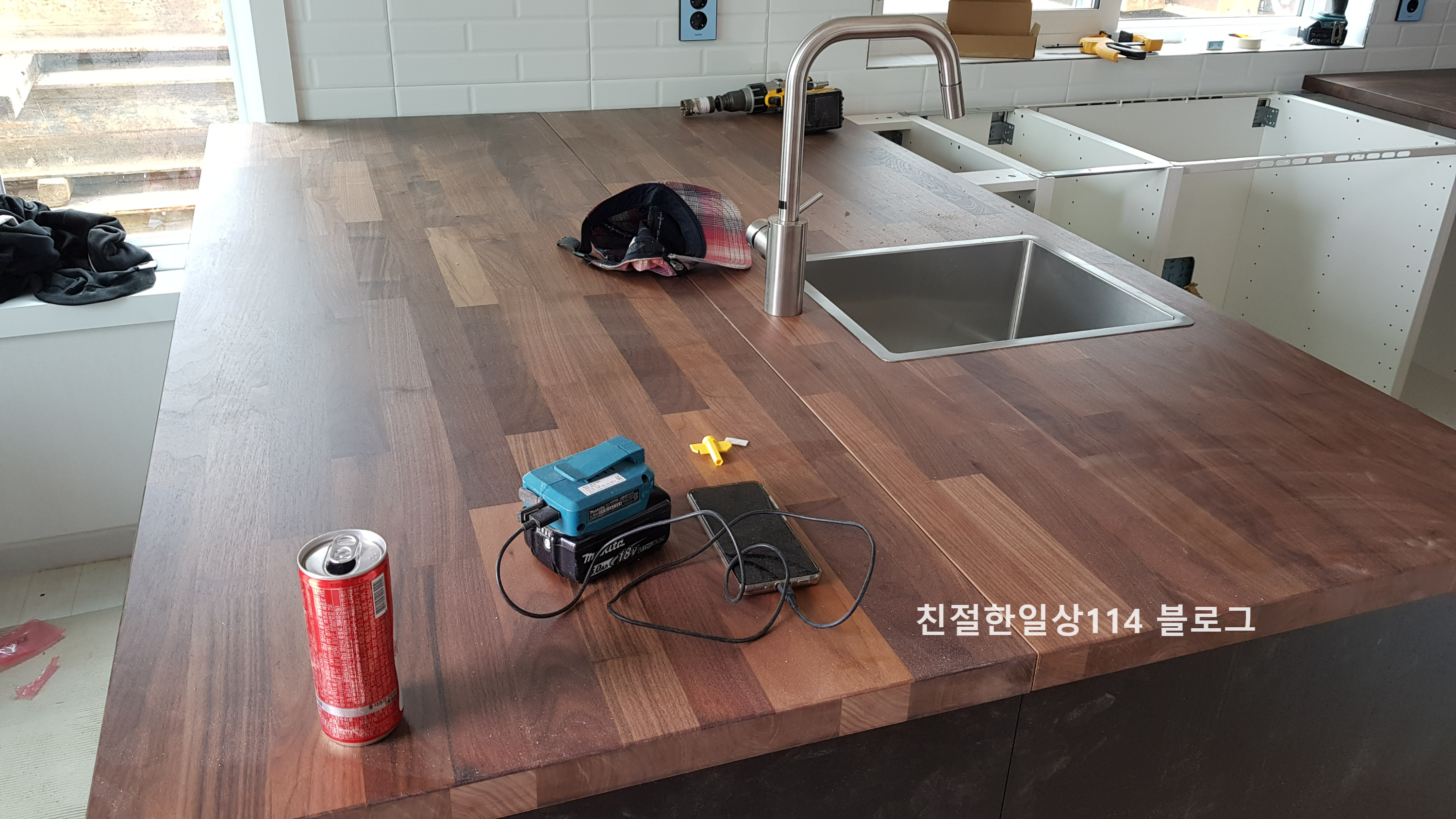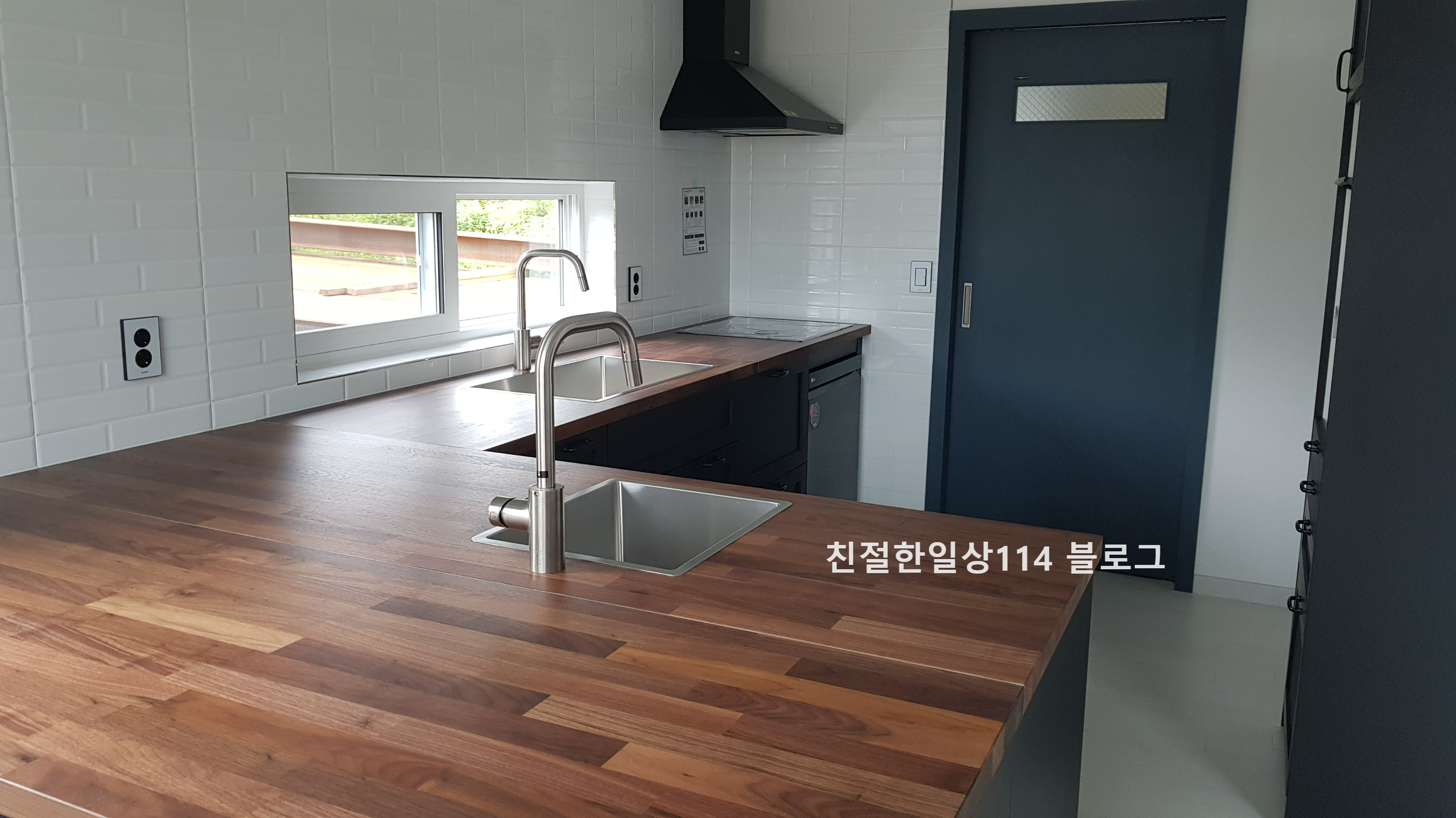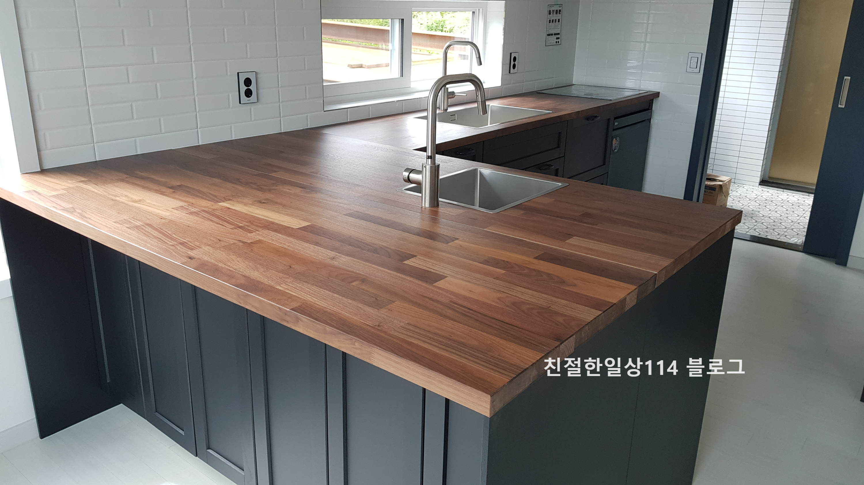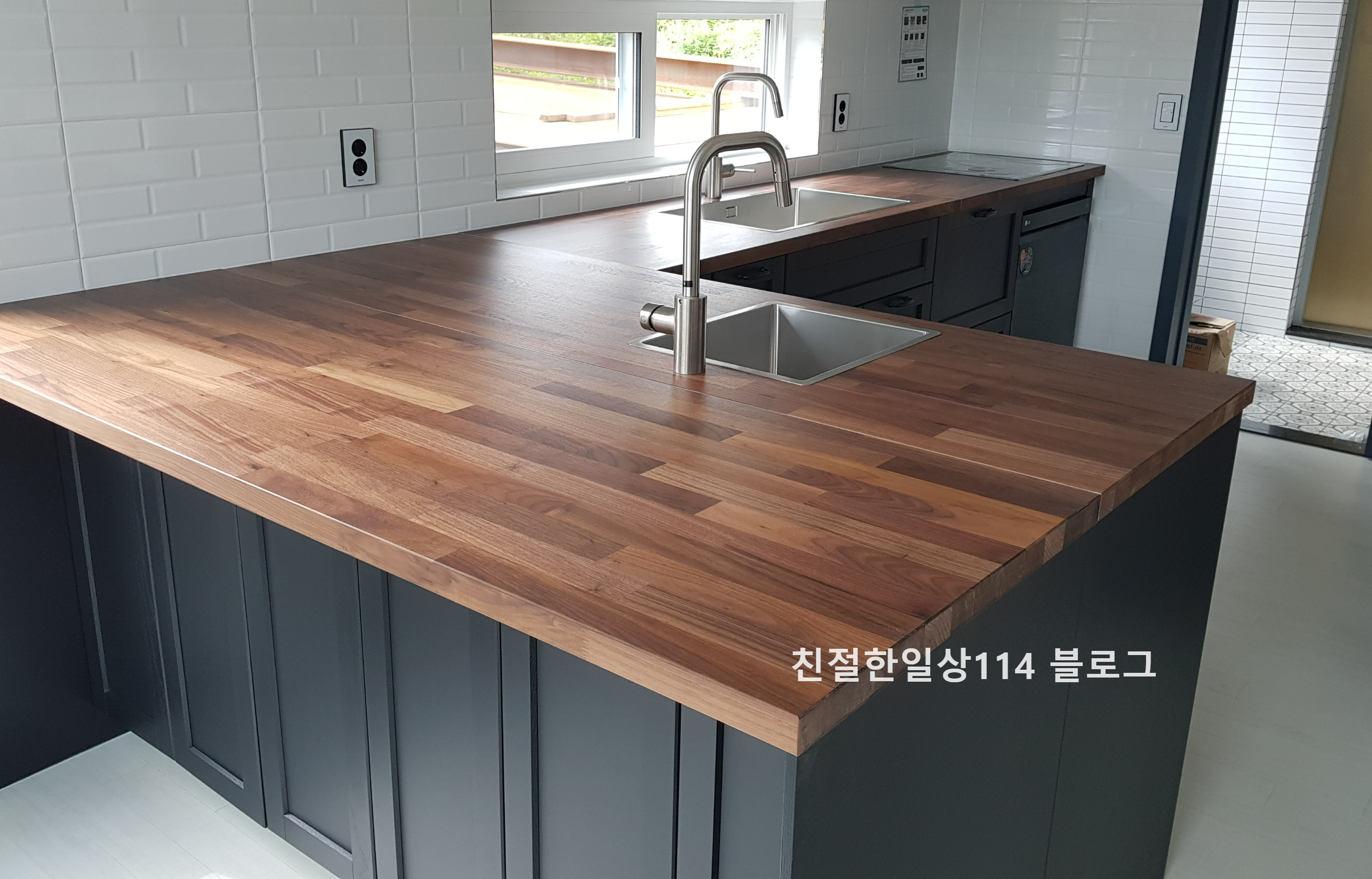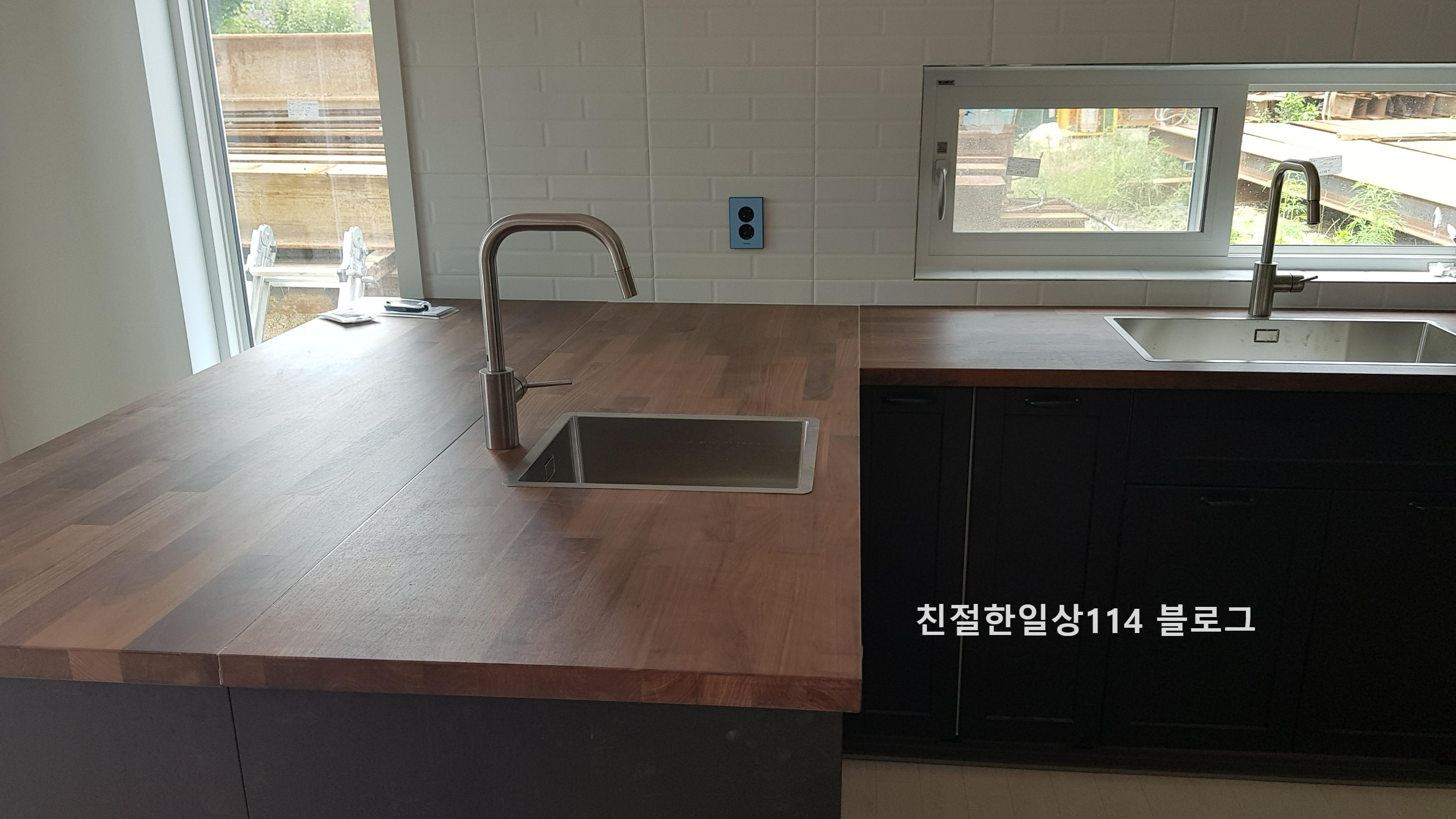 - [주방 인테리어] 세련되고 예쁜 나만의 주방을 완성해줄 싱크대에 대한 고민 (원목상판 싱크대/아일랜드 식탁 그리고 상부장 없는 주방)
