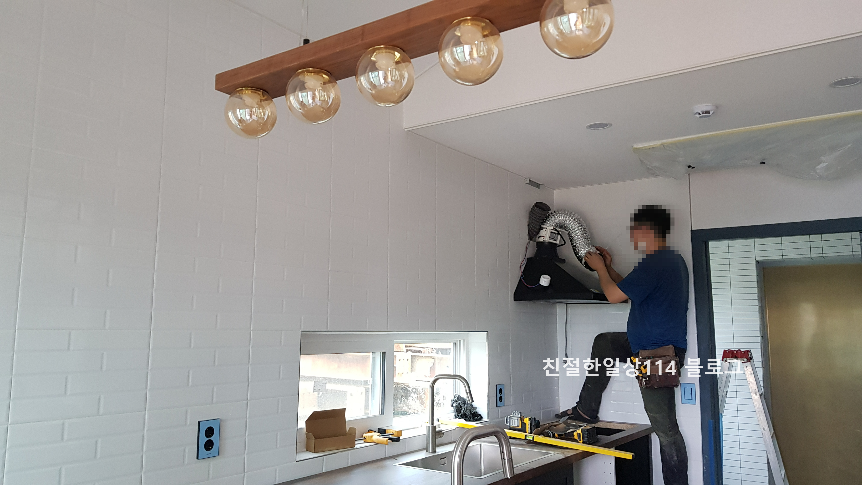 주방 후드를 설치 맡기기 위해서 미리 인터넷으로 주문해 현장에 준비해 두었다. 후드는 설치가 가능한 제품이 있고 불가한 제품이 있어 실측을 진행한 플래너에게 후드 구매전 확인을 했다. 설치는 유료이며 설치비로 4만원을 따로 지불했다.