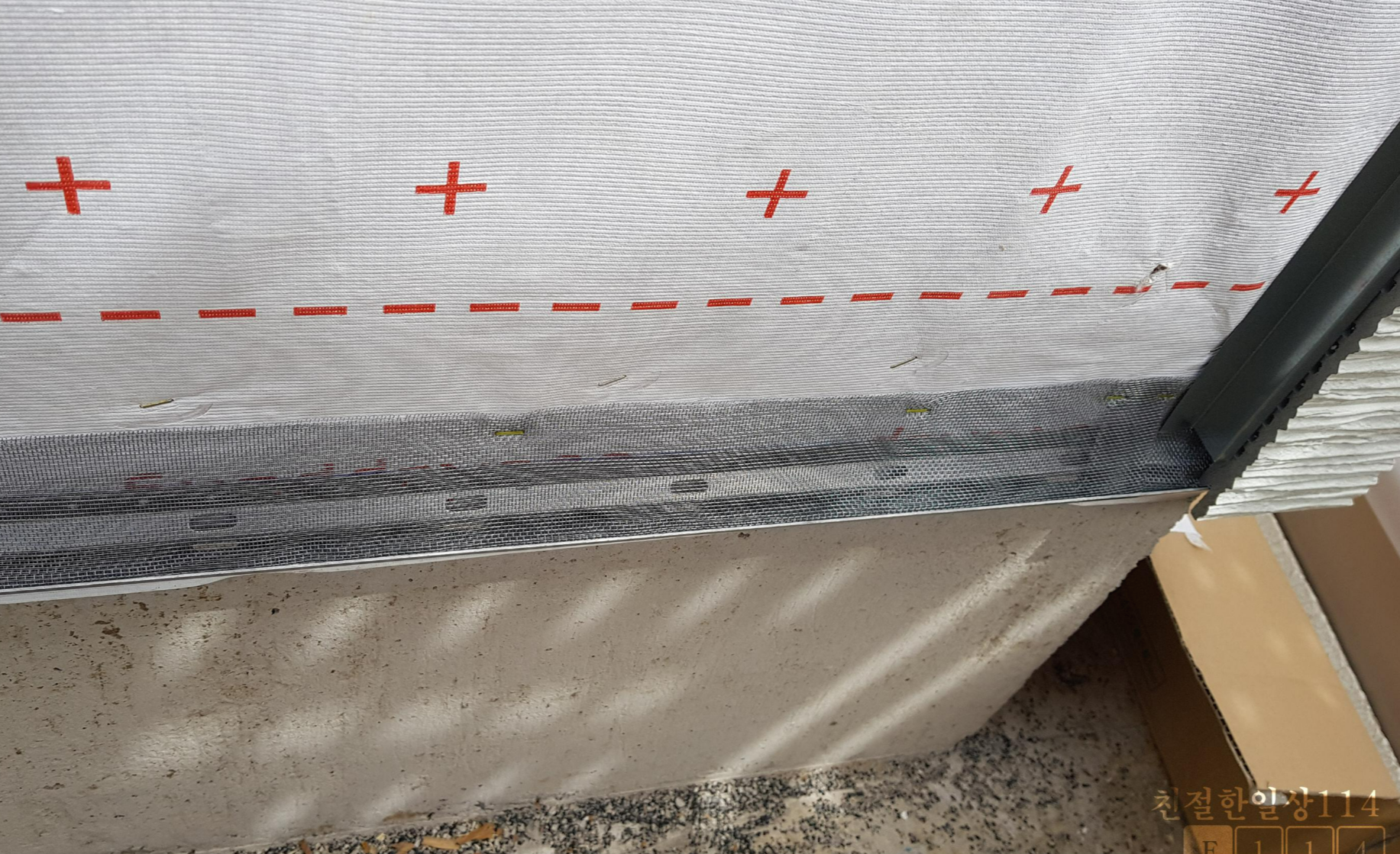 시공사에서 요구하기 전에 알아서 해주는 곳이 있는지 모르겠지만 필자는 시공전에 미리 얘기를 해 두었고 세라믹사이딩 시공시 방충망 설치가 된 것을 확인 할 수 있었다