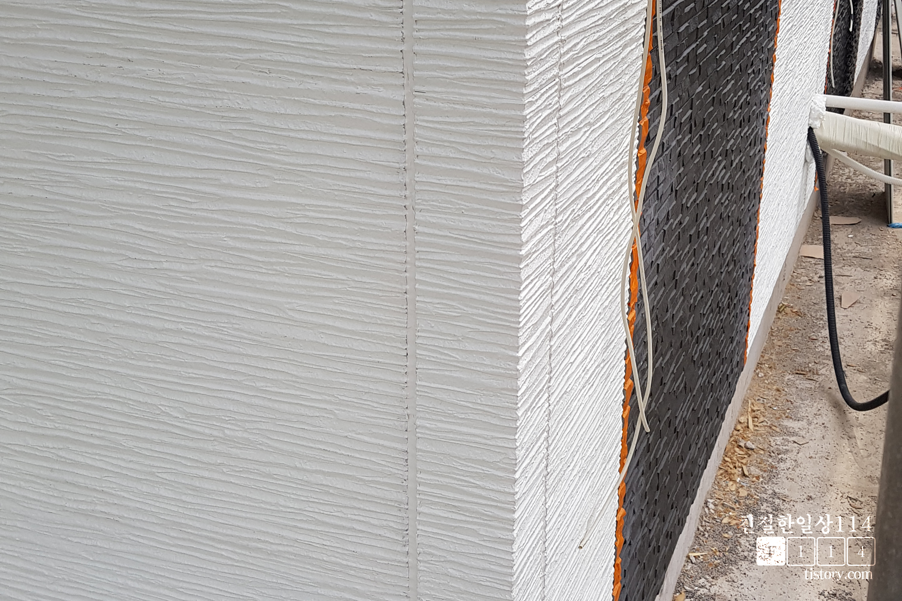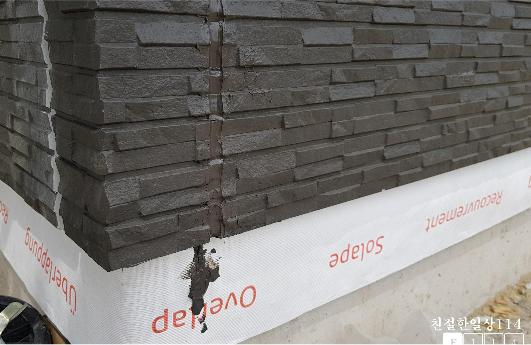 건물 모서리에 해당하는 코너에는 코너석이 들어간다. 다른 대체체가 아닌 케뮤사의 정품 코너석으로 시공되고 있음을 볼 수 있다.