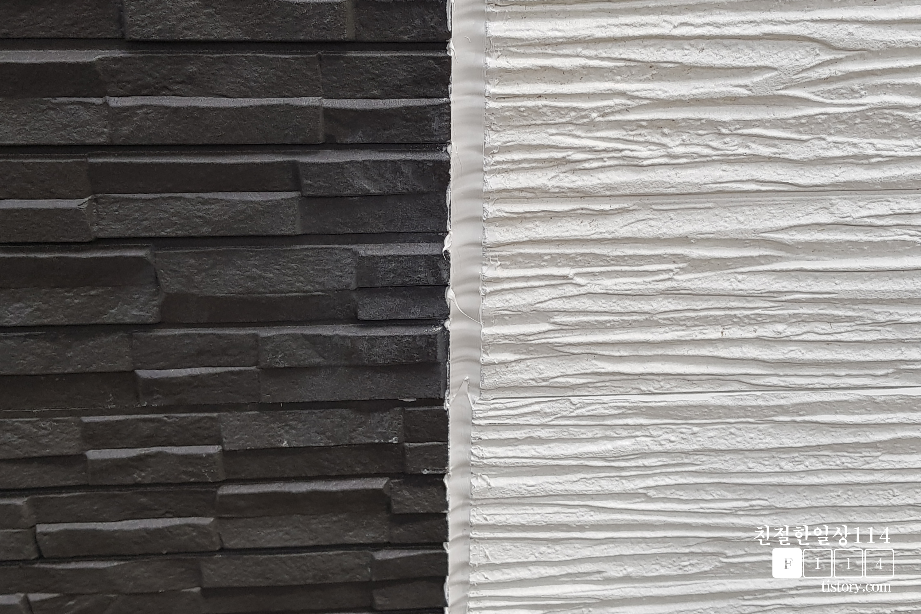 세라믹사이딩간의 이음새에는 양날 조이너가 들어가고 이렇게 틈이 생긴다. 이 틈새 사이는 전용 실란트를 쏴서 마감한다. 이 전용 일반 실리콘보다 탄성이 뛰어나 기온차가 심하게 나더라도 벌어지거나 갈리지지 않는다고 한다. (그래서 비싸다고 하니 이해는 함) 전용 실란트 수명은 7년~10년 정도라고 하는데 결국 7년 정도 지나면 갈라진 부분이 있다면 부수를 해줘야 하지 않을까 싶다.