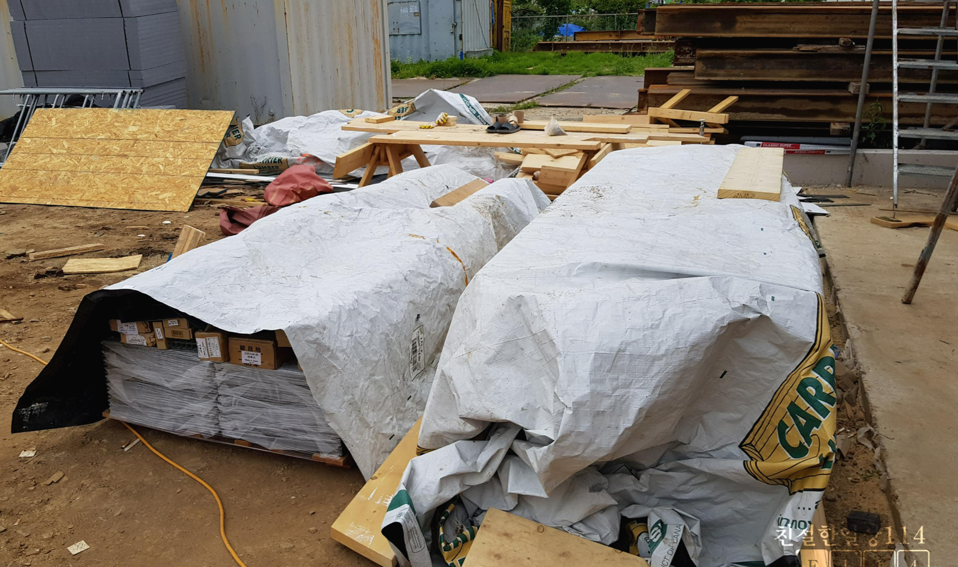 공사진행 공정표에 따르면 건물 외장재 세라믹사이딩 공사기간을 7일 잡아두었으나 2일 정도 더 걸렸는데, 이것도 자재 일부가 수입이 지체되어 처마 밑 부분은 나중에 하기로 했음에도 더 걸린 것이다.