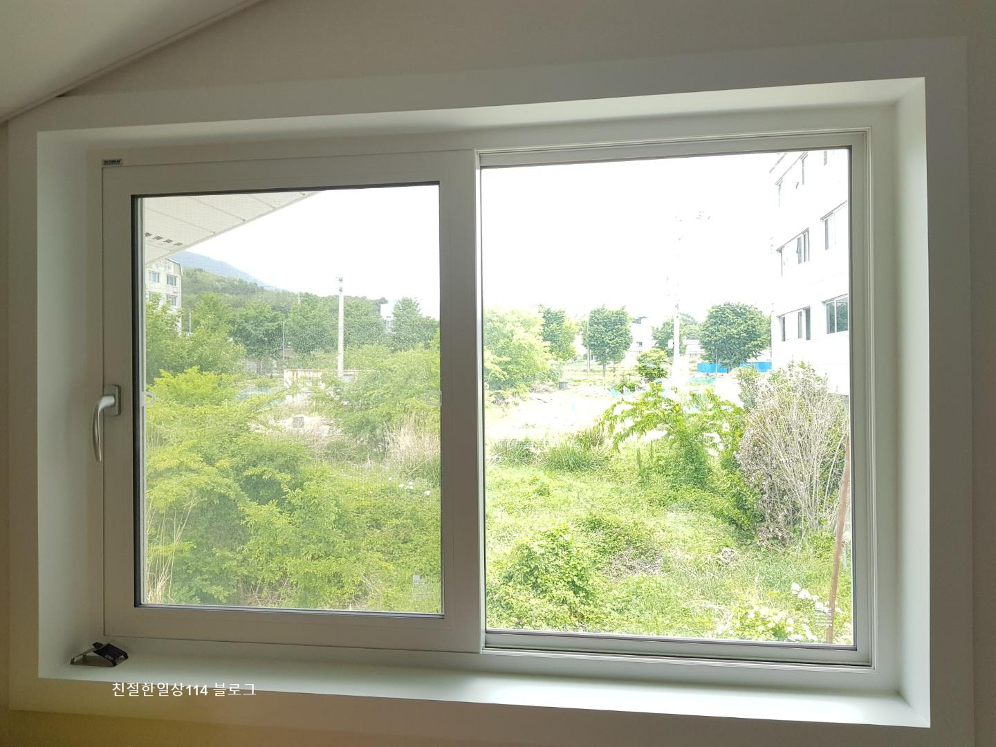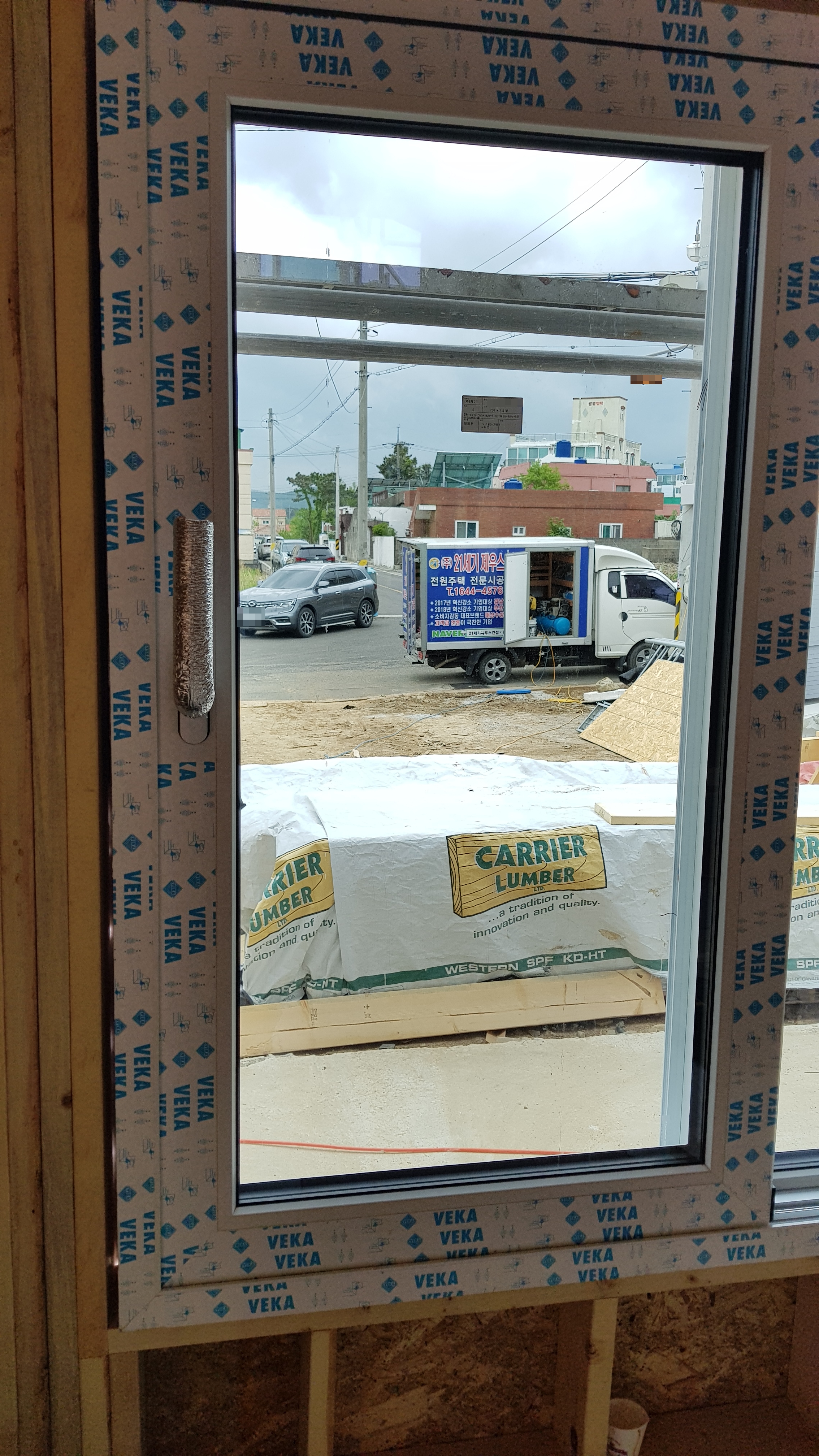 다이닝룸과 드레스룸의 창문. 창문 프레임은 기본 색상이 화이트이다. 필름은 창문 프레임을 감싸고 있는 면에 시공 될 예정이다.