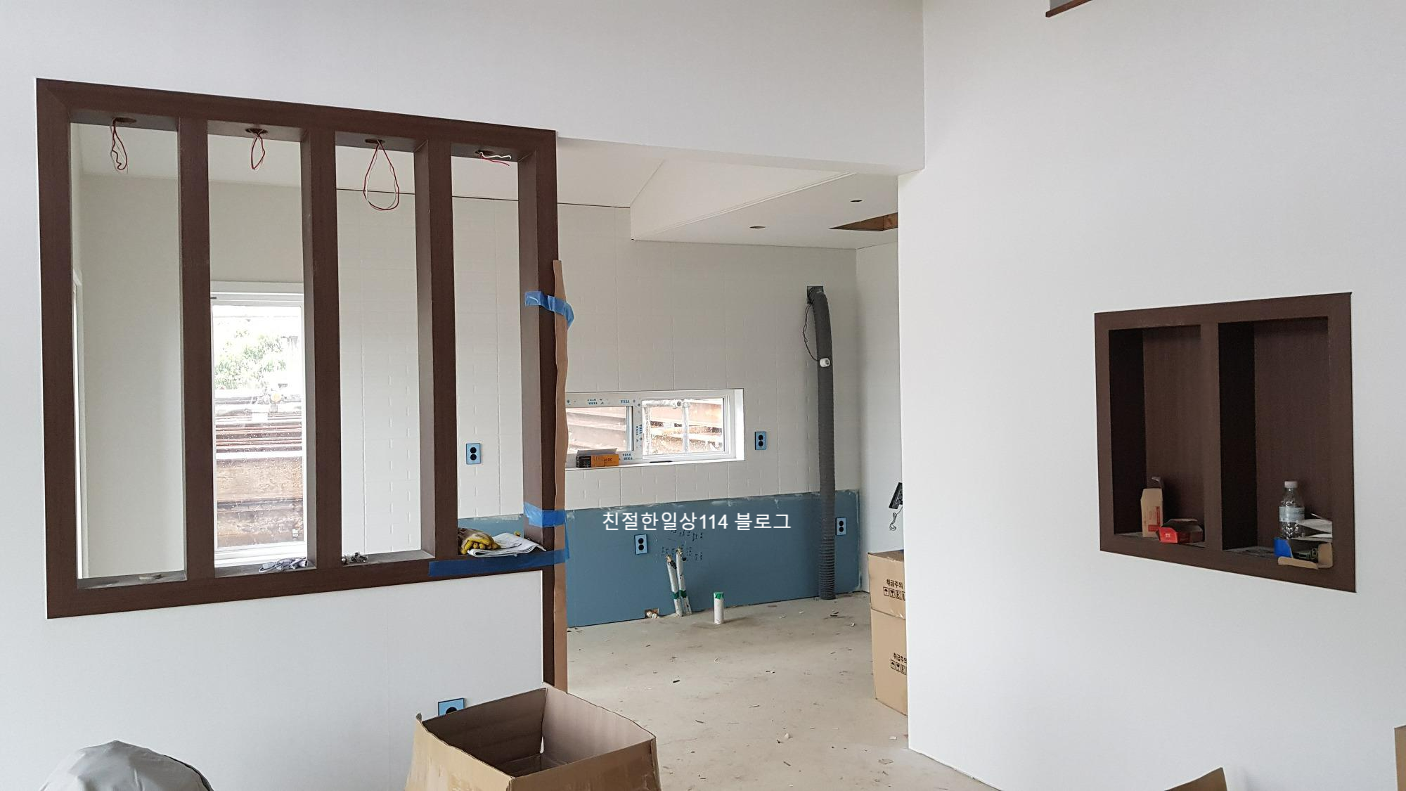 인테리어필름을 시공할 부분으로는 창문틀과 벽매립수납칸, 그리고 거실과 다이닝룸의 가벽이다. 먼저 시공전 사진을 올려본다.