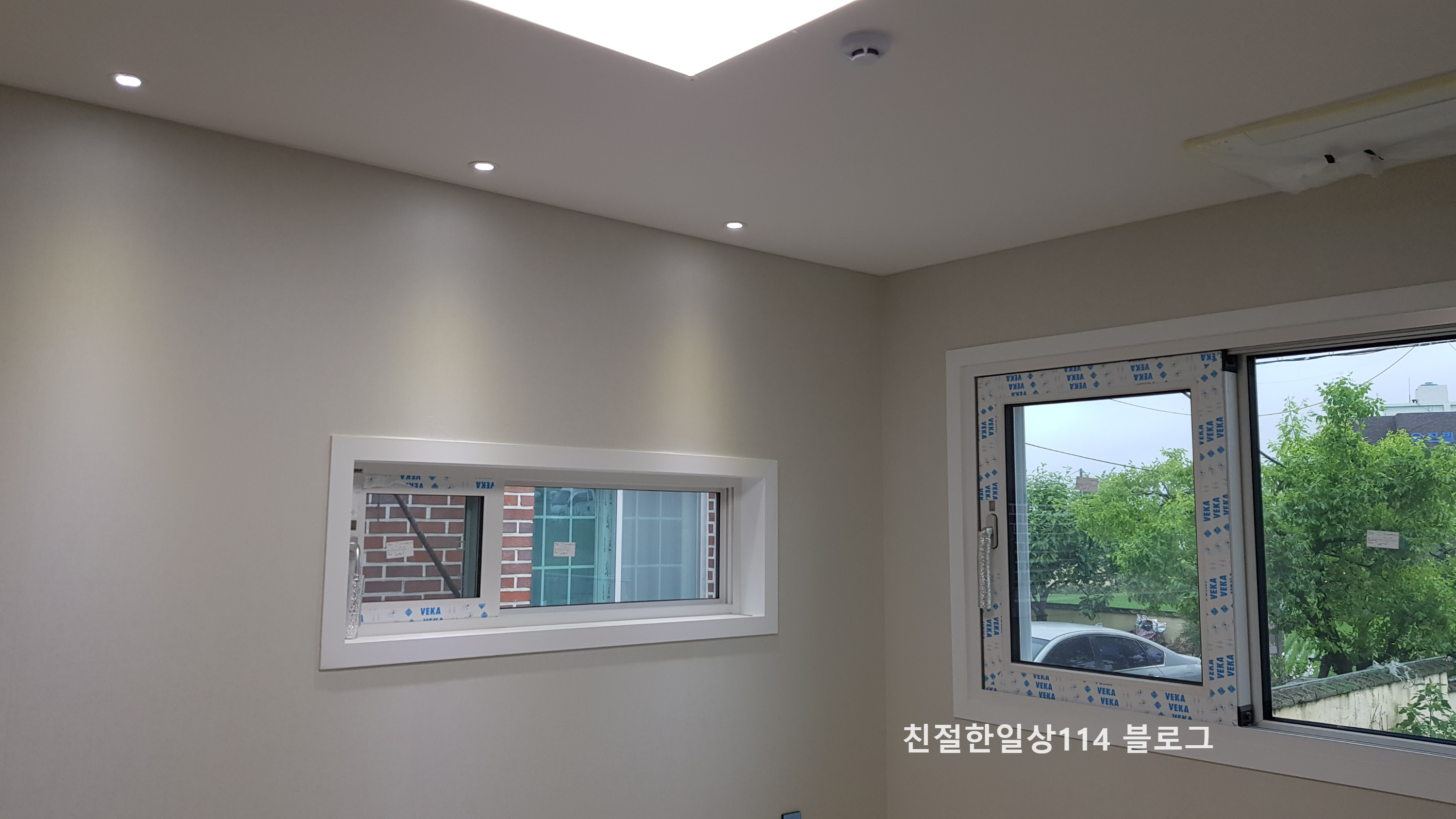 2일에 걸쳐서 전기기구 설치가 끝났다. 전기가 아직 들어오지 않아서 조명은 켜볼 수가 없다. 천장과 벽을 볼때 구멍 대신 깔끔하게 조명들 자리하니 한결 보기가 좋다.