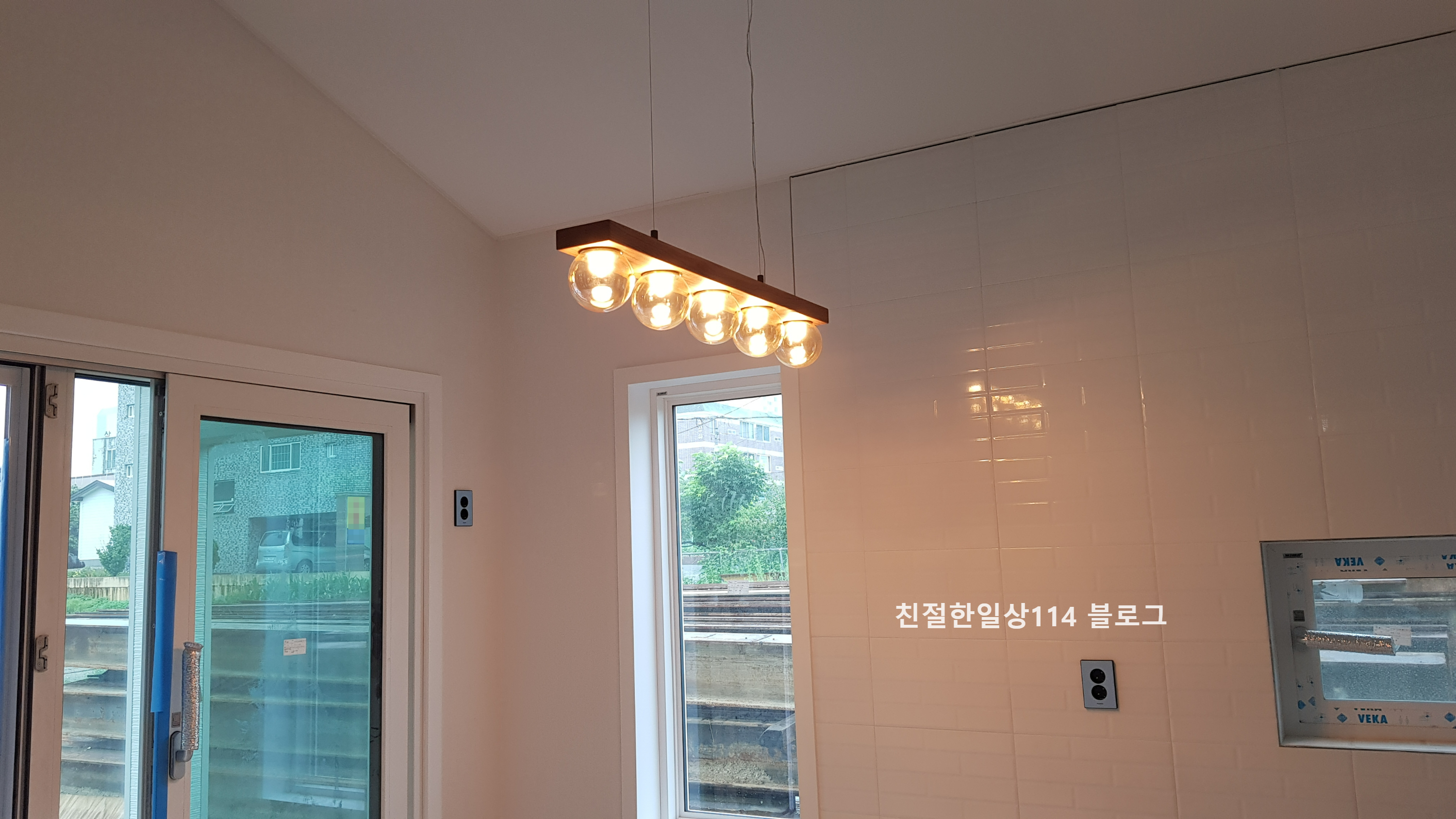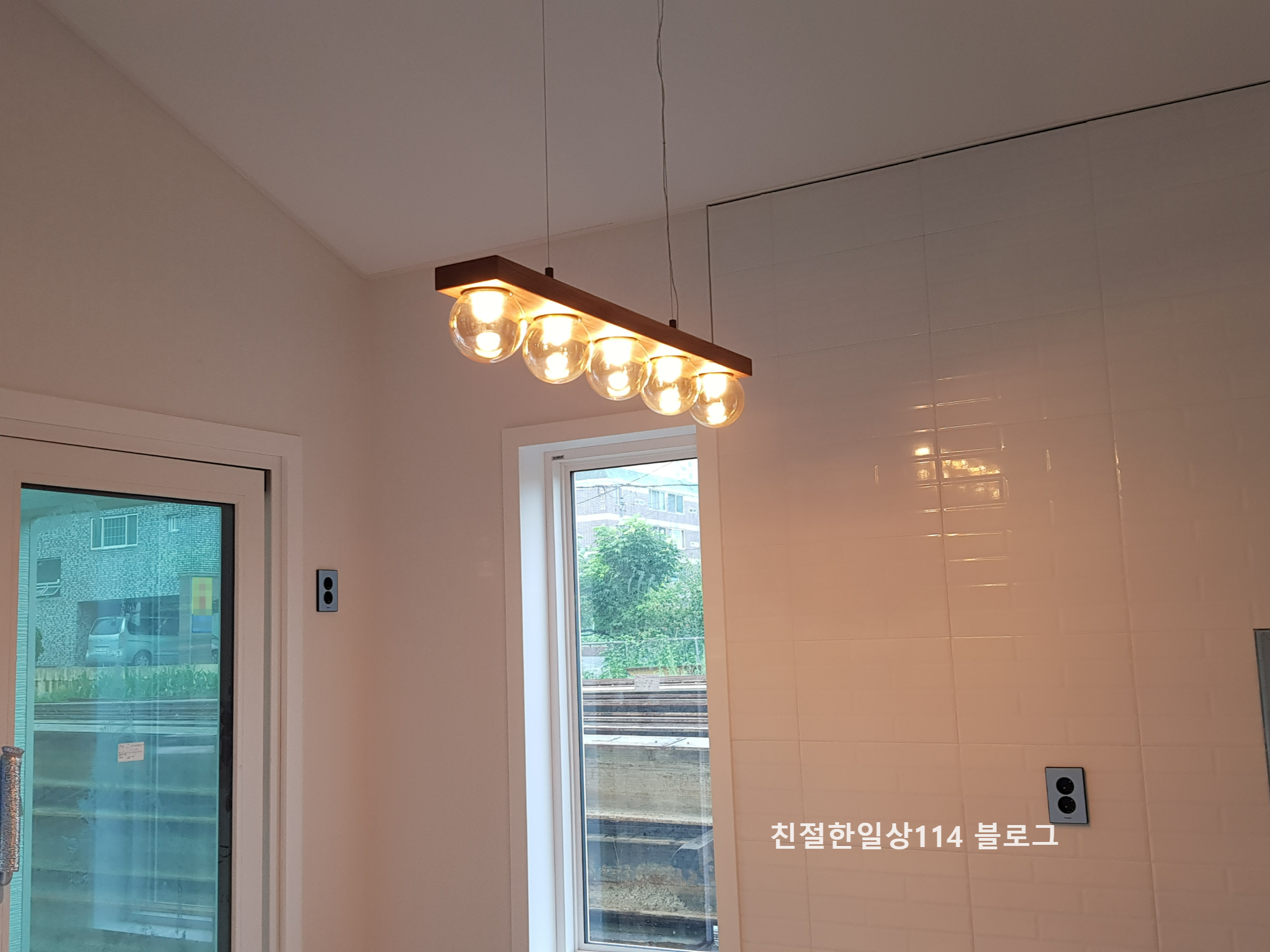 주방 펜던트는 선도조명 제품이다. 전기기구 설치일정에 맞춰서 현장에 준비해 두었다.