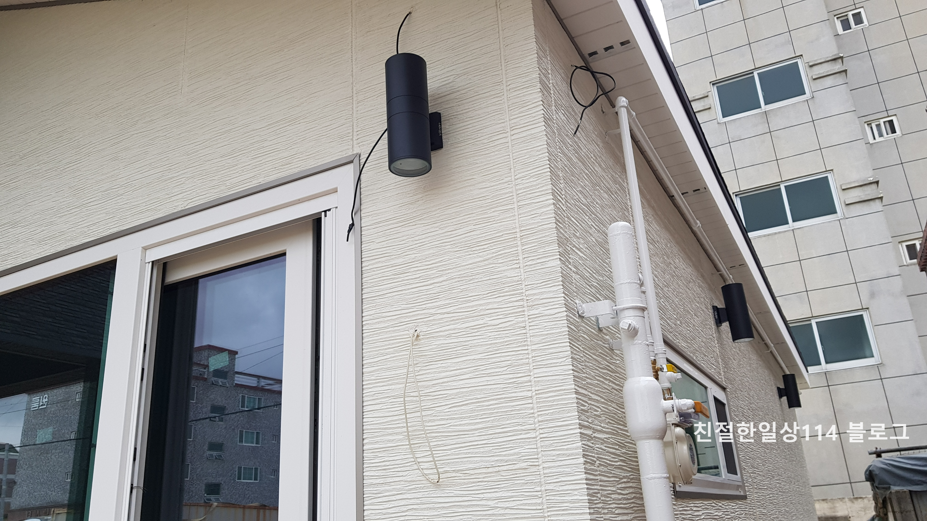 건물 외벽에 설치될 외부등. 이건 선택할 수가 있어서 블랙색상을 선택했다. 모양은 단조롭게, 색상은 블랙 아니면 화이트가 좋다.