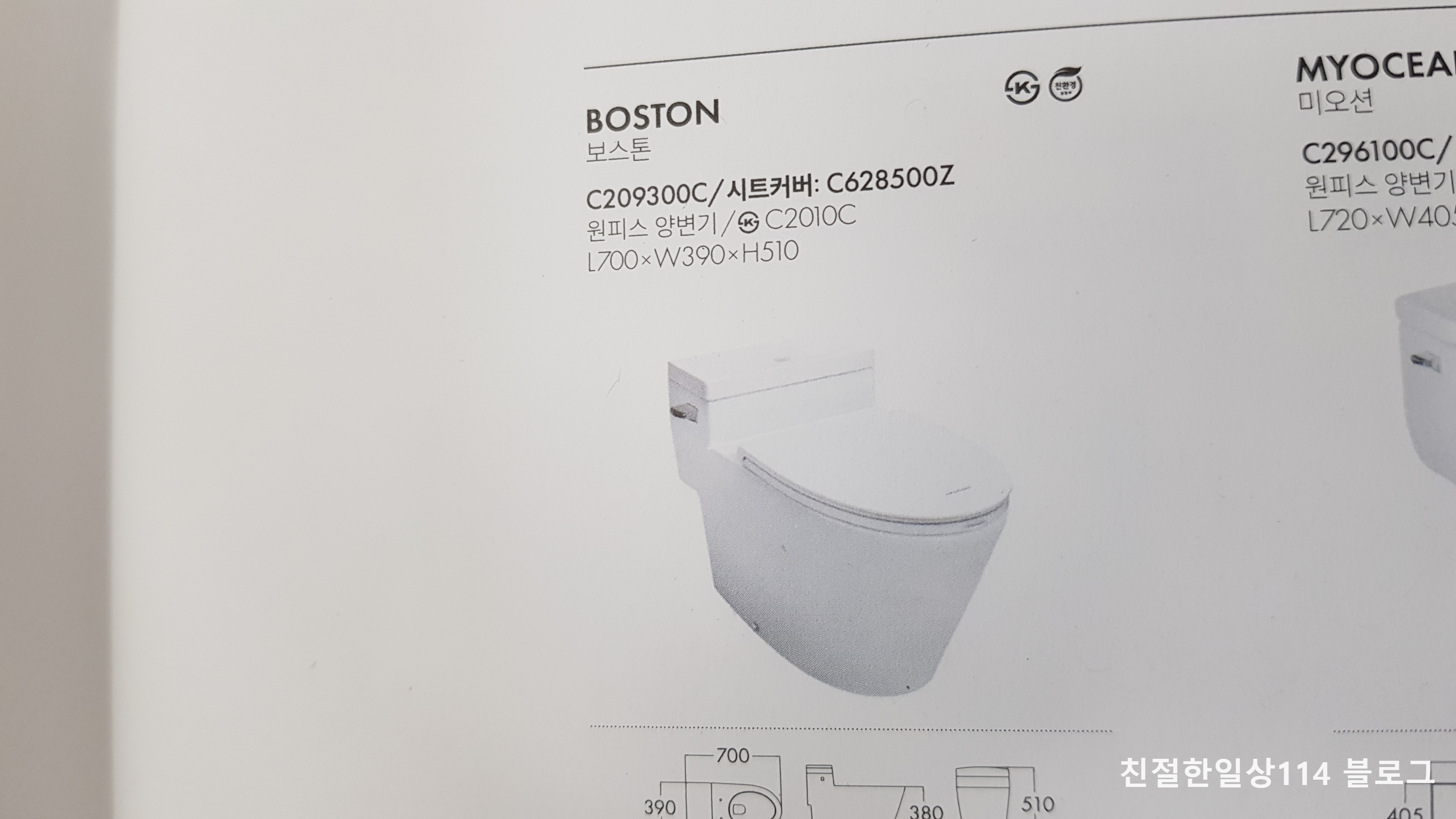 변기와 세면대는 다행인지 종류가 그리 많지 않아서 선택하는데 어려움은 없었다. 변기는 아메리칸 스탠다드가 기본이나 재고가 없어서 보스톤(BOSTON) 제품으로 설치될 거라며 책자를 보여준다. (보스톤이 아메리칸 스탠다드보다 좋다고 하는데 찾아보지는 않아서 맞는 말인지는 모르겠다)