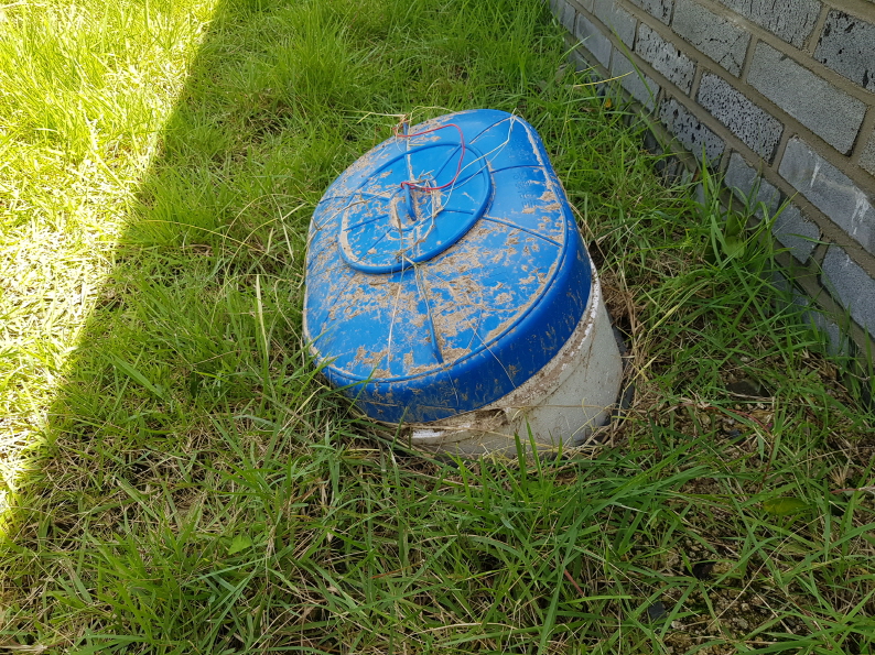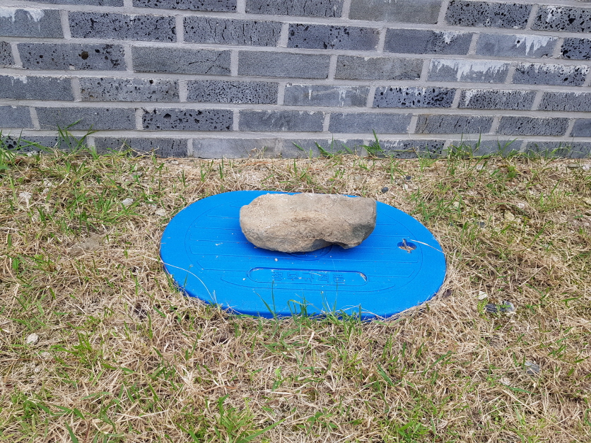 태풍이 수도계량함을 뽑아가려 했다. 땅속에 묻어둔 계량함이 들려서 땅위로 솟구쳐 있다. 바람이 더 건드렸더라면 어디론가 날아가 찾을 수 없었을 지도 모른다.