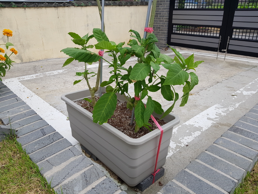피해를 가장 많이 입었던 화단의 봉숭아는 태풍 피해 복구할때 땅을 깊이 파서 심어두었다.