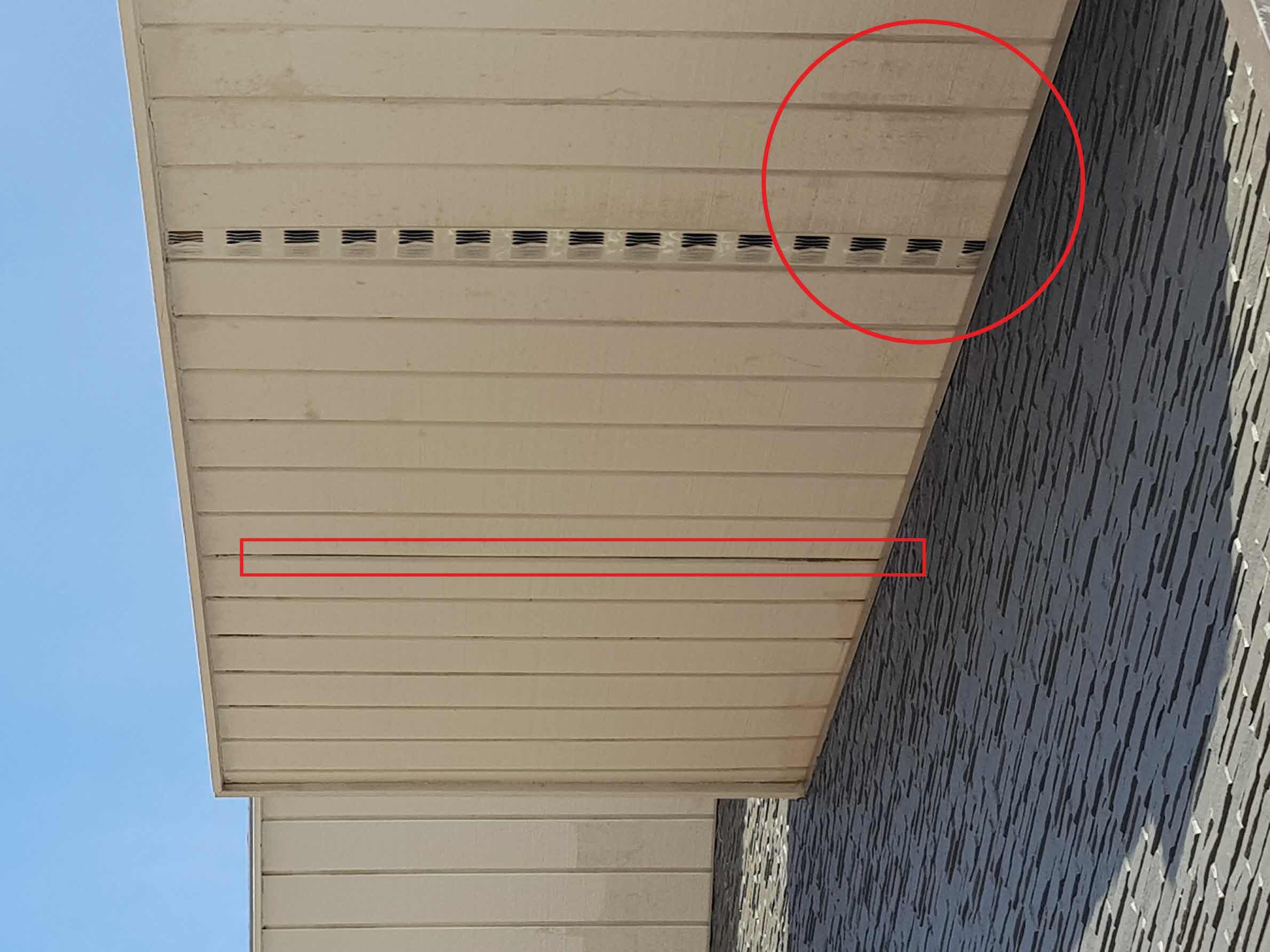 [전원주택짓기-누수/하자] 주택 처마(소핏)에서 빗물이 새고 물 얼룩이 생기다.