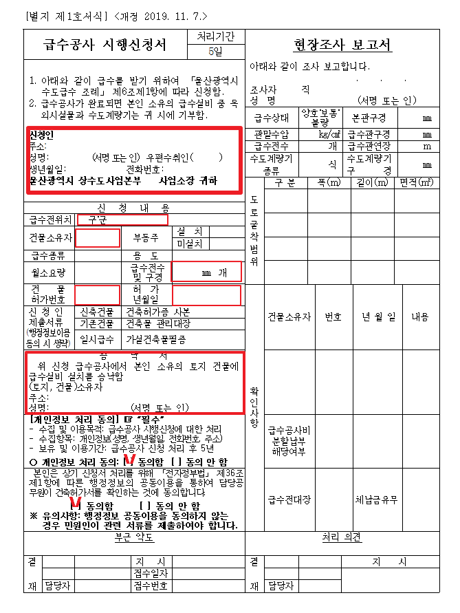 ㅣ상수도 급수공사 시행신청서 작성 요령 (반드시 기재할 내용)