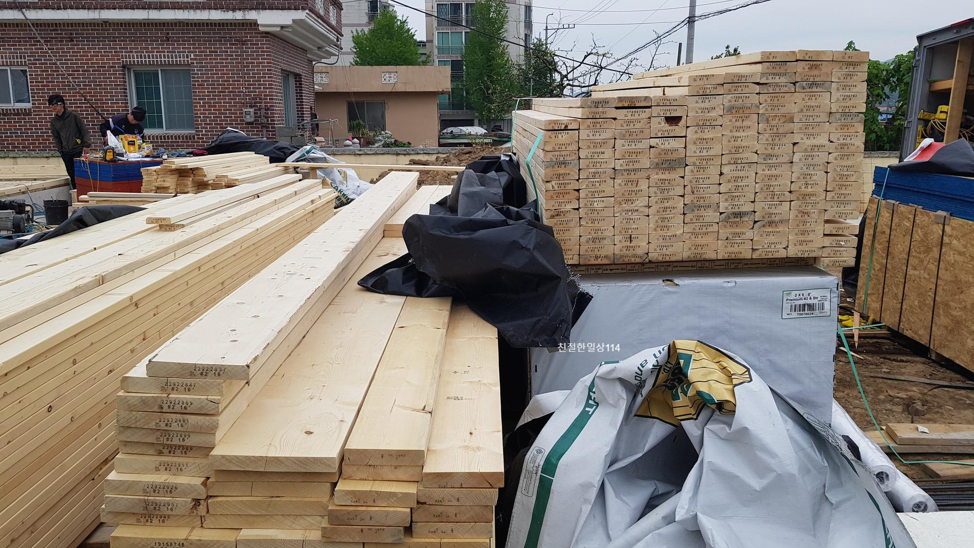 ( 구조체에 쓰이는 목재를 스터드라고 부르며 규격은 2*6 인치 / 28*140 mm)