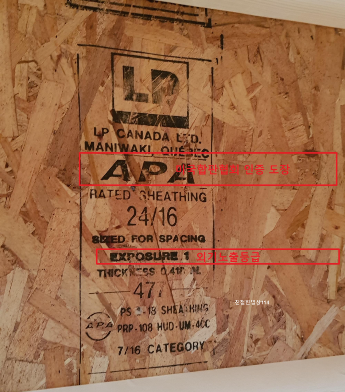 APA인증(American Plywood Association): 미국합판협회가 인증하는 품질