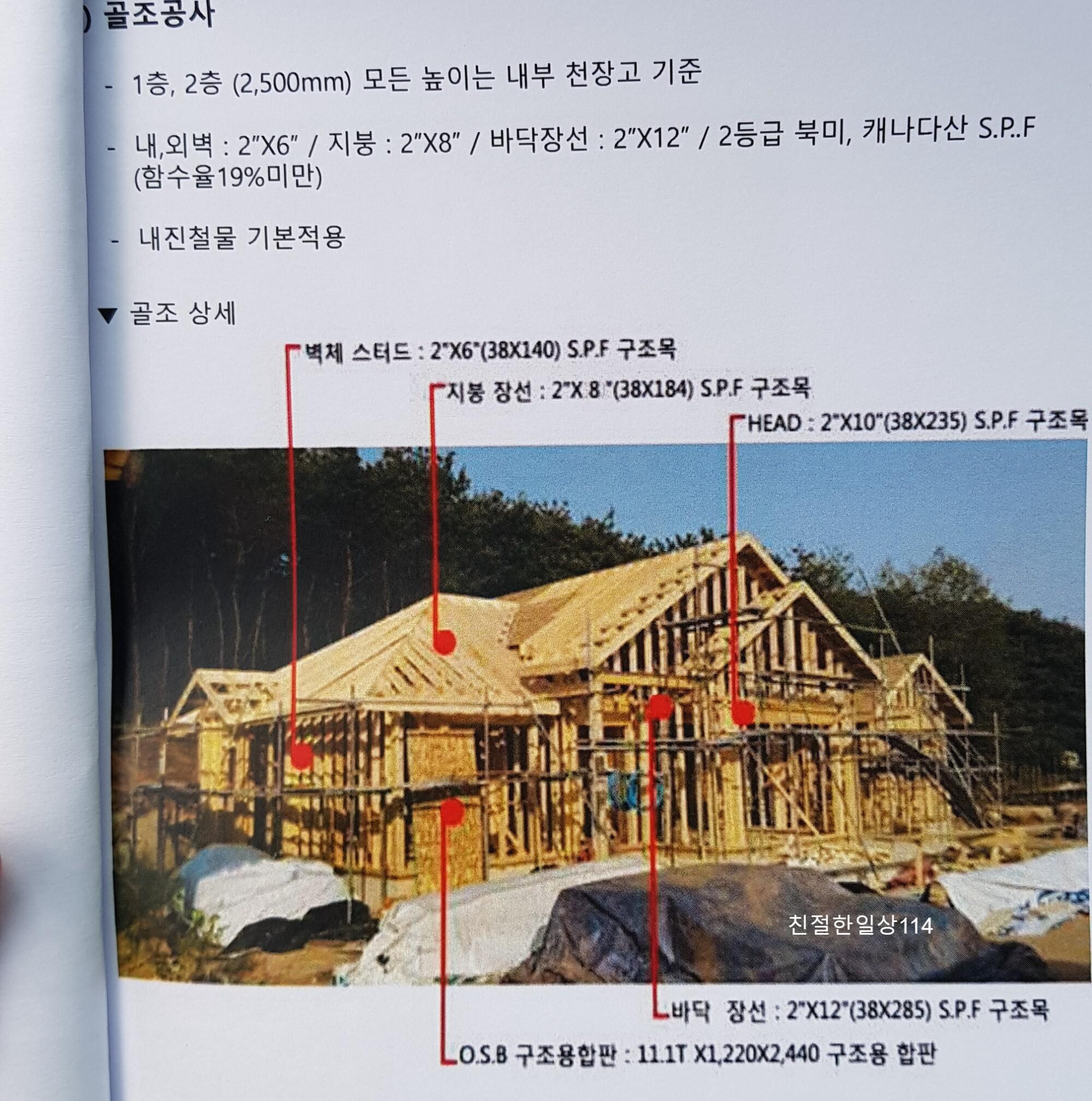 구조제 S.P.F 수종: Spruce가문비나무, Pine소나무, Fir전나무를 섞어 만든 구조재