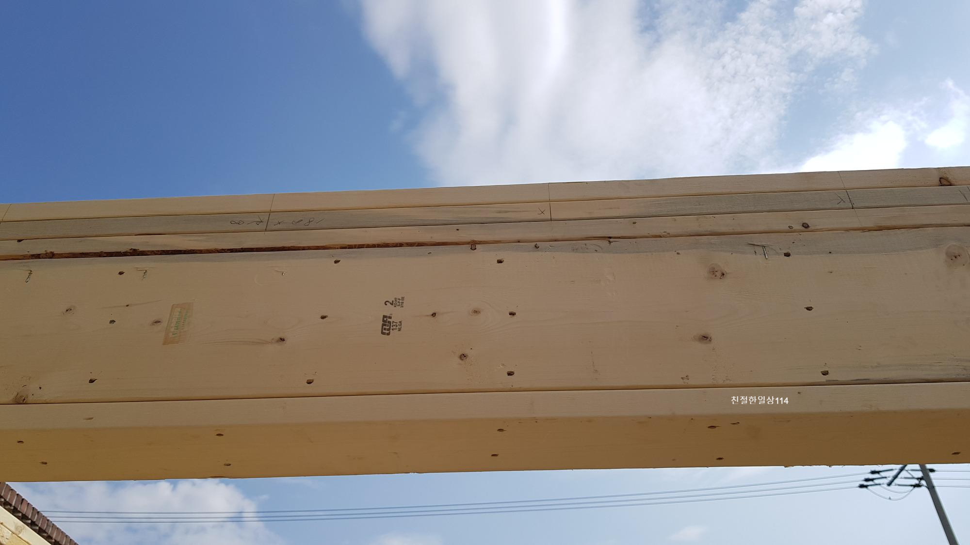 - 지붕 장선: 2*8(38*184) S.P.F 구조목