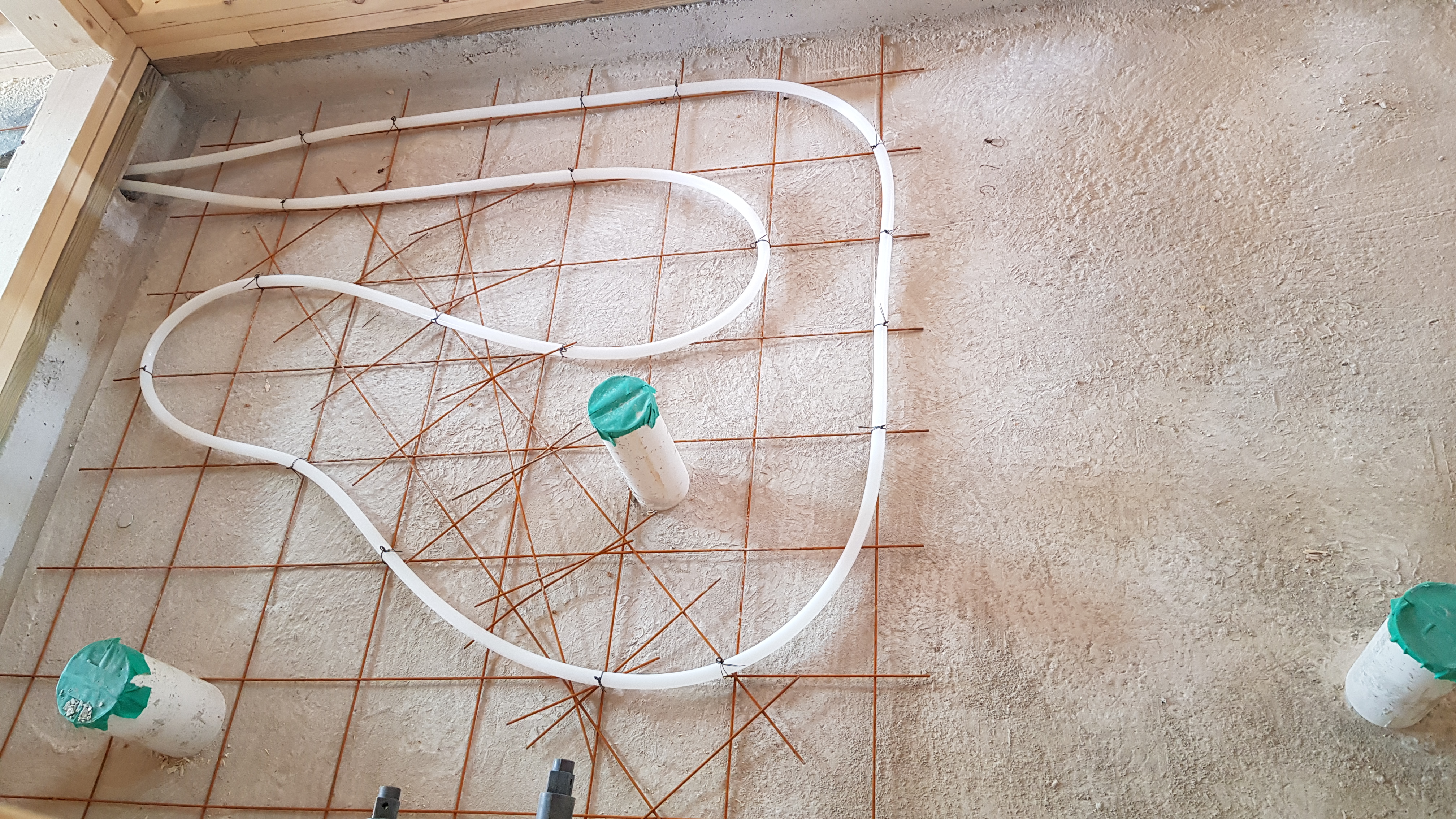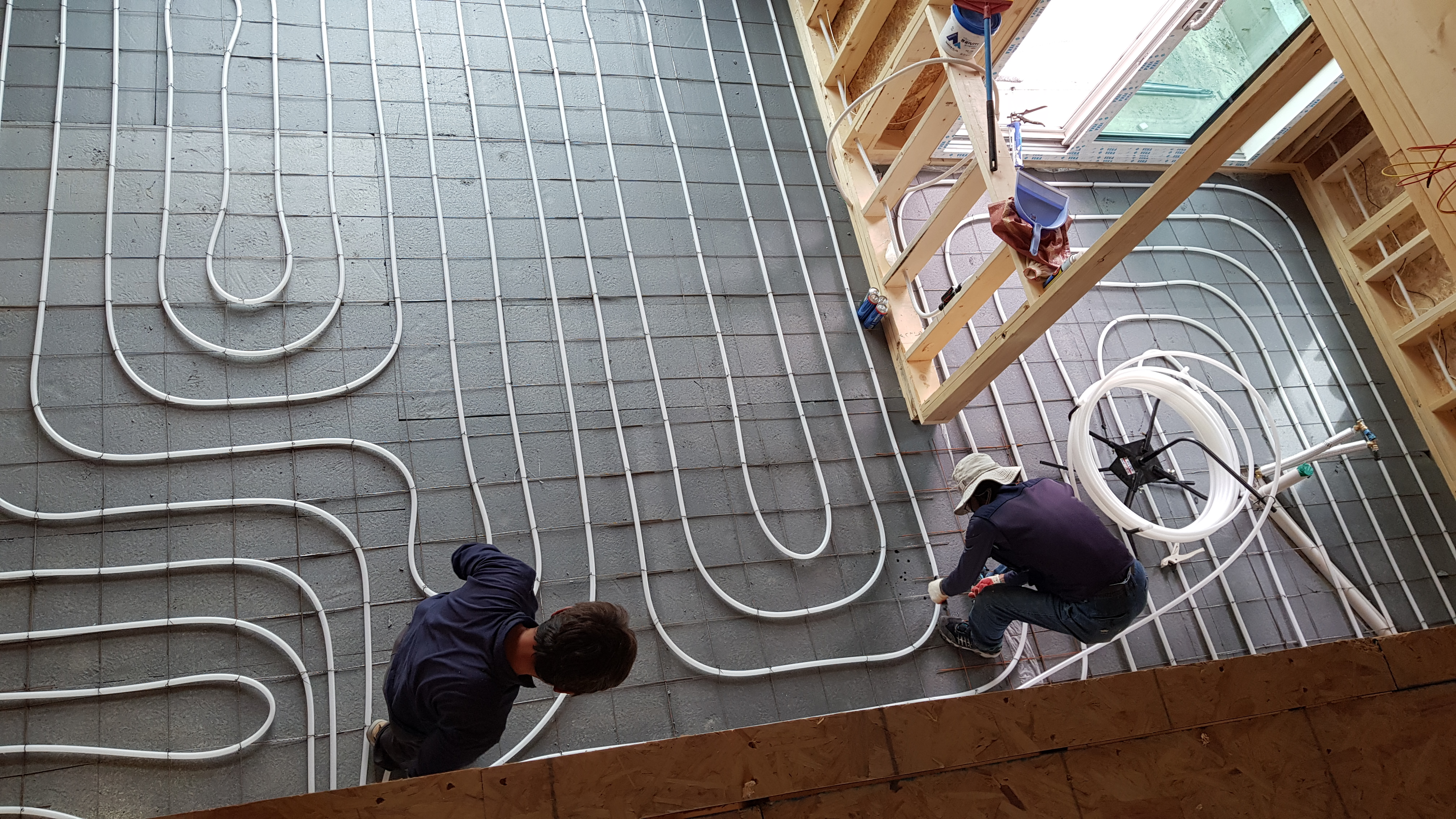 집 외부에서는 지붕공사가(지붕재: 아스팔트슁글) 진행되고 집 내부에서는 난방설비팀이 들어와서 실내 바닥의 난방공사를 진행한다.