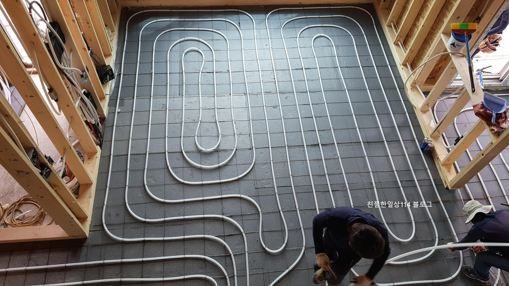 난방설비공사는 처음 기초공사를 했던 팀이 다시 들어와서 공사를 진행한다. 난방설비공사는 4일 일정으로 잡혀있다.
