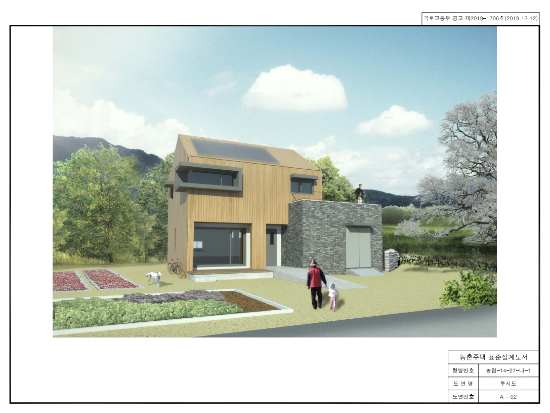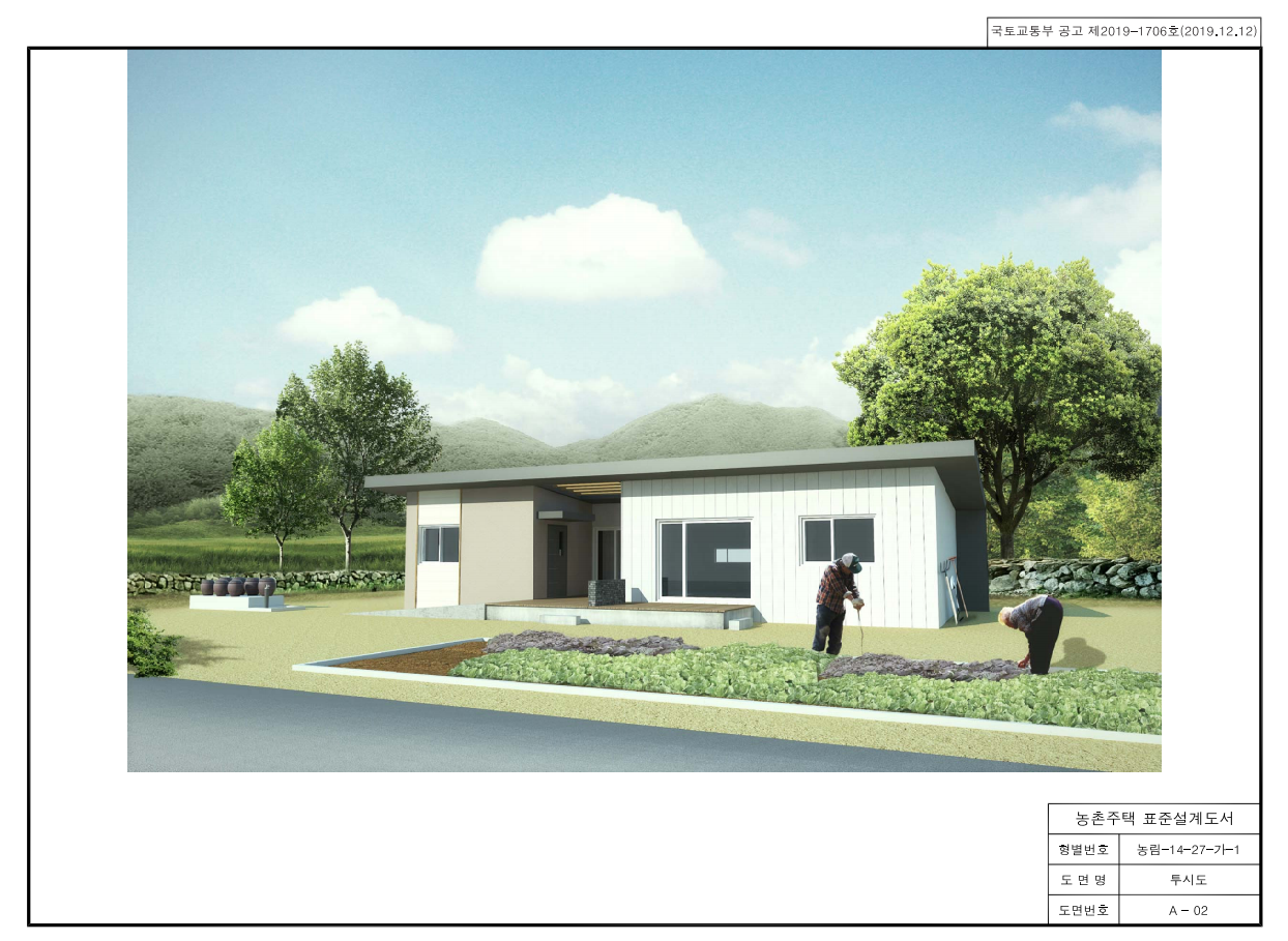 ●농촌주택표준설계도는 연면적40㎡부터 190㎡까지 총 32종의 유형을 제공하고 있다. ●표준설계도를 활용하더라도 건축신고시 필수서류인 신축하려는 부지에 맞는 배치도(대지 내 건물의 위치, 정화조, 오·우수처리 등 표현) 및 건축계획서는 건축주가 가지고 있는 대지를 기준으로 관계법규에 맞도록 작성되어야 한다. 이는 일반인이 작성 및 신고하시기 에는 어려움이 있으므로, 건축사사무소를 통하여 대행하시기를 권장하며, 건축주가 직접 인허가 절차를 이행할 수 있는지 여부는 허가권자인 시군구 건축과에게 문의필요. ●표준설계도를 활용할 경우 건축신고로 완화. 다만, 건축법상 인 허가 절차(건축신고→착공신고→사용승인신청→건축물대장 등록)는 동 일하게 수행하도록 되어 있으며, 세부절차는 허가권자인 시군구청 건 축과에 문의 ●건축행정 업무처리 시 도면 및 서류는 건축행정시스템 “세움터“ (www.eais.go.kr)을 통해 전자문서로 제출하여야 한다. ●표준설계도를 활용할 경우 인허가는 건축신고로 완화되어 일반건축물 인허가시 보다 필요서류(배치도, 건축계획서)와 검토기간이 짧아지는 장점이 있다. ●농촌주택표준설계도는 이미 개발이 완료된 설계도를 활용하므로 건축 설계시 평면 및 입면 구상에 소요되는 시간을 단축할 수 있고 시공업체 가 대충 작성하여 공사를 진행함으로 발생하는 시공자와의 마찰을 사전 에 방지할 수 있다. |