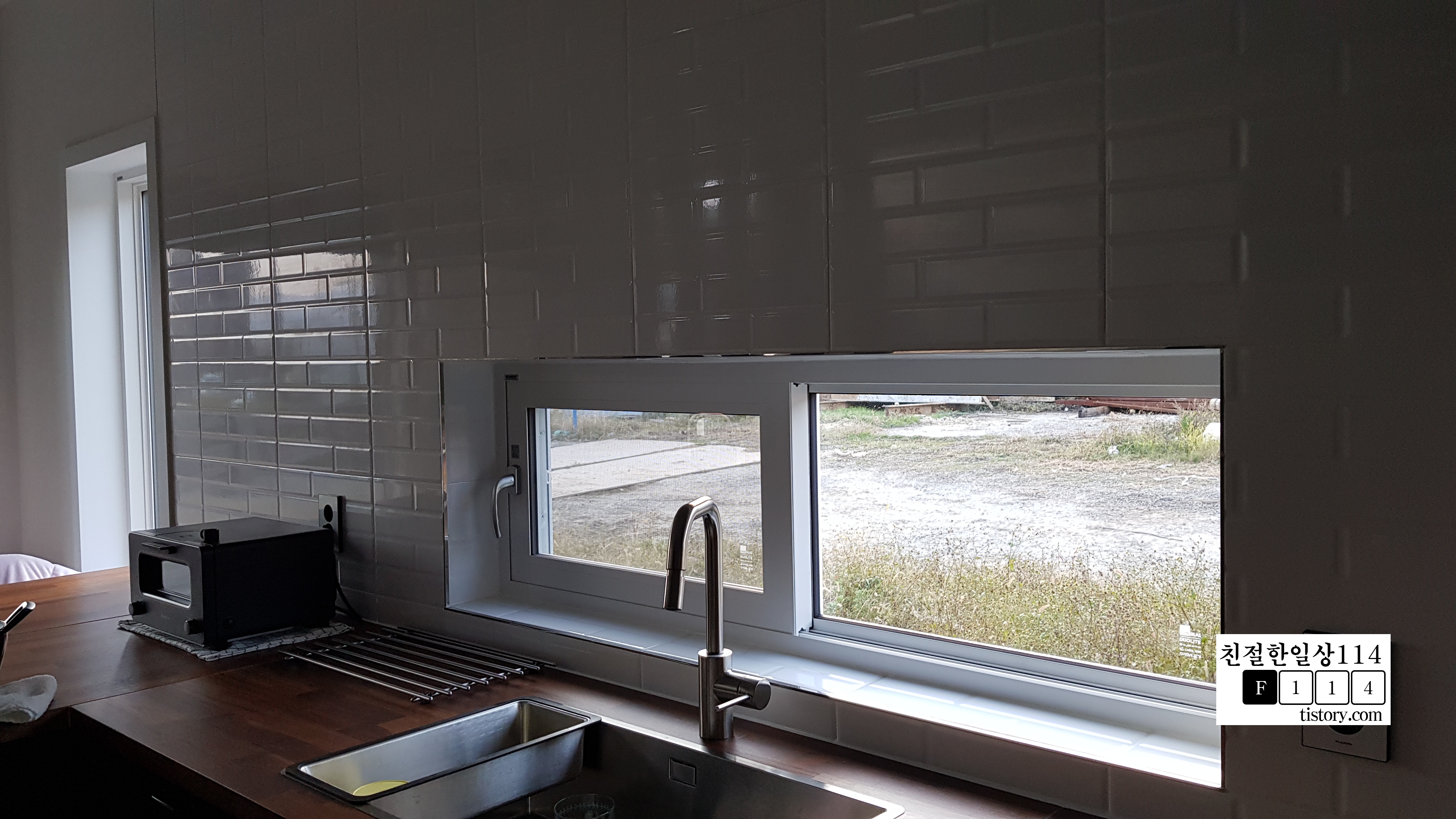 설계 당시 한번 얘기 했었는데 다락의 높이 문제가 터지는 바람에 창문 크기를 변경 문제를 확실히 매듭짓지 못 해서 반영이 되지 않았다. 돌이킬 수 없기에 아쉽지만 그대로 진행한다. -> 두고두고 후회가 되는 부분이다. 주방창이 서쪽인데 서쪽에 산이있어 풍경이 매우 멋지다.