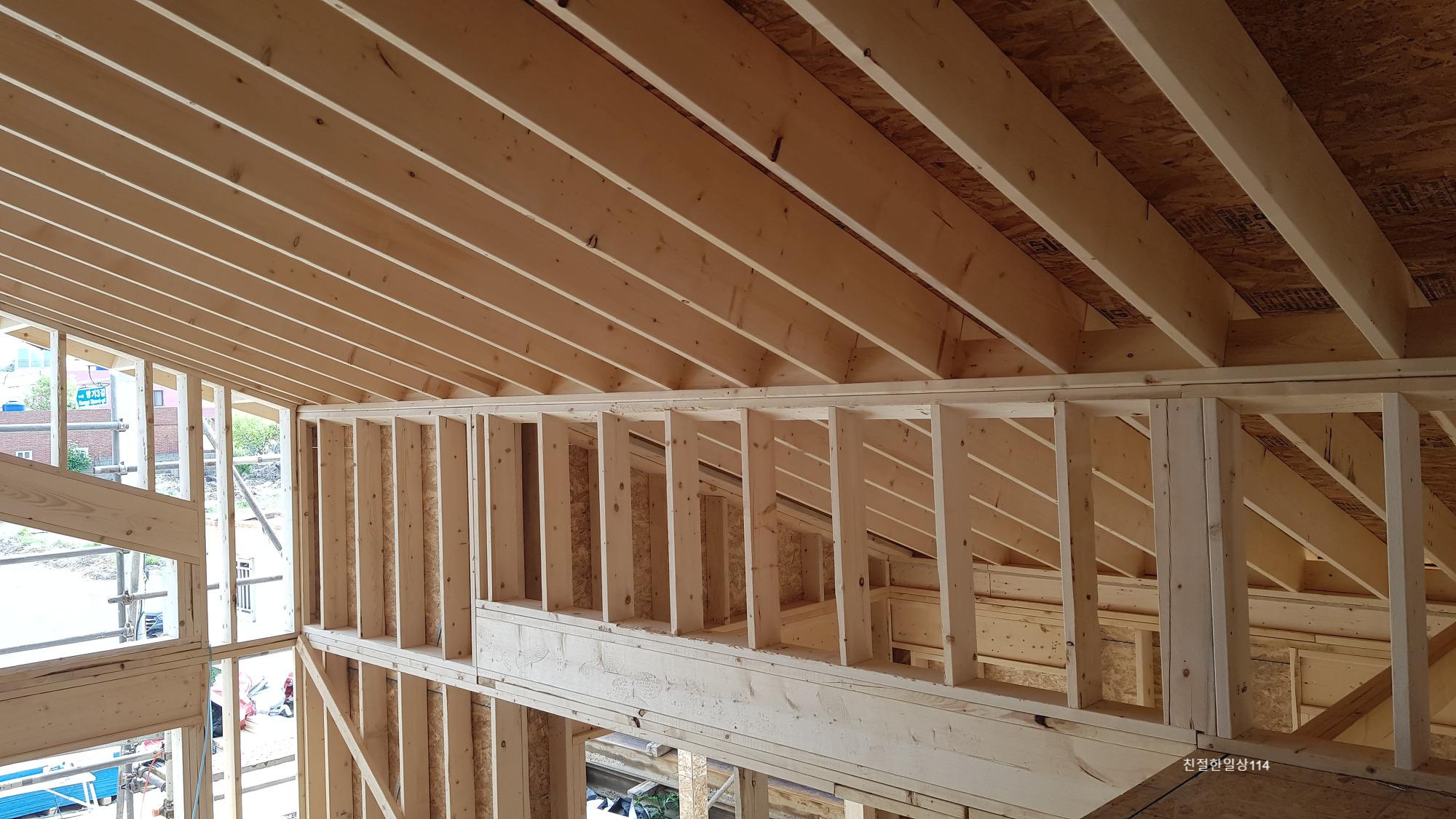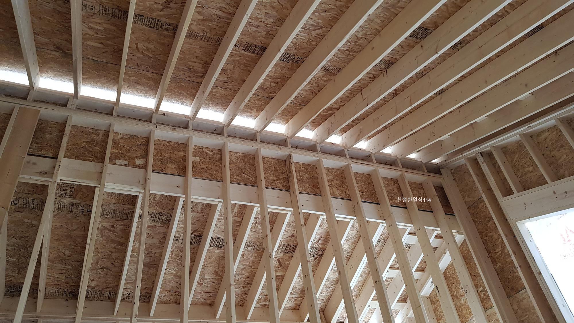 지붕 장선이 시공되고 천장을 보니 경이롭다. 규격이 일정하여 선이 아름답게 느껴진다.