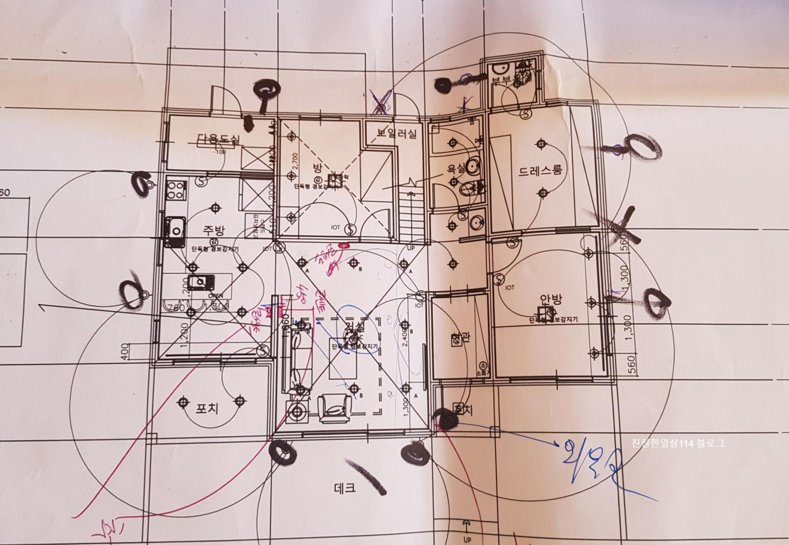 설계도를 작성하면서 스위치, 외부등, 콘센트 위치를 선정해두었는데 이날 외부등 위치와 스위치 위치, 콘센트 위치를 현장에서 다시한번 확인하고 변경할 것들은 변경한다. 그리고 동선을 생각하며 콘센트와 스위치를 추가로 설치하면 좋은 곳이 있는지 확인하고 추가한다.