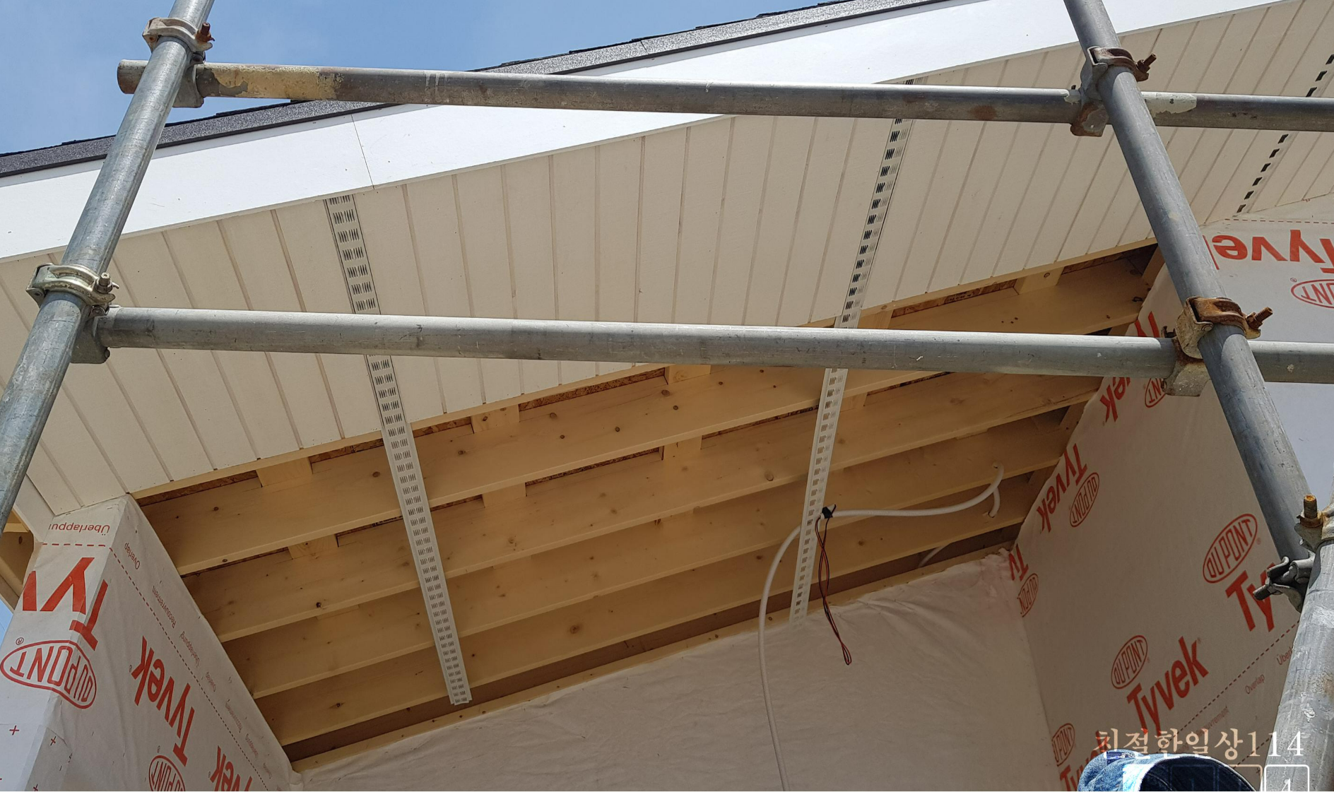 골조공사 도중 여러가지 공사가 동시 다발적으로 이루어진다. 골조공사 마지막 즈음 현장에 많게는 5개 업체가 공사를 진행하기도 한다. (골조, 창호, 전기입선, 에어컨배관, CCTV배선) 현장에 되도록 매일 출근하다시피 하며 기존 설계대로 공사가 진행되는지와 문제는 없는지 확인 해 본다. 다만 현장에서 걸리적 거리지 않도록 가급적 점심시간이나 인력이 적은 시간 위주로 방문하고 일하는 분들 힘내서 더 잘 지어달라고 음료도 사다 나른다. 골조공사 마무리쯤 전기입선 공사가 진행된다. 전기공사에는 전기인입비용이 건축 시공비와는 별도로 발생한다. 전기인입비용으로 110만원과 지중화 작업비 80만원, 그리고 한전 측에 납부하는 선납금 10만원이 있다. 이렇게 전기인입공사에 앞서 전선을 매립여부를 결정하며 추가비용을 지불하고 전기공사가 시작된다.