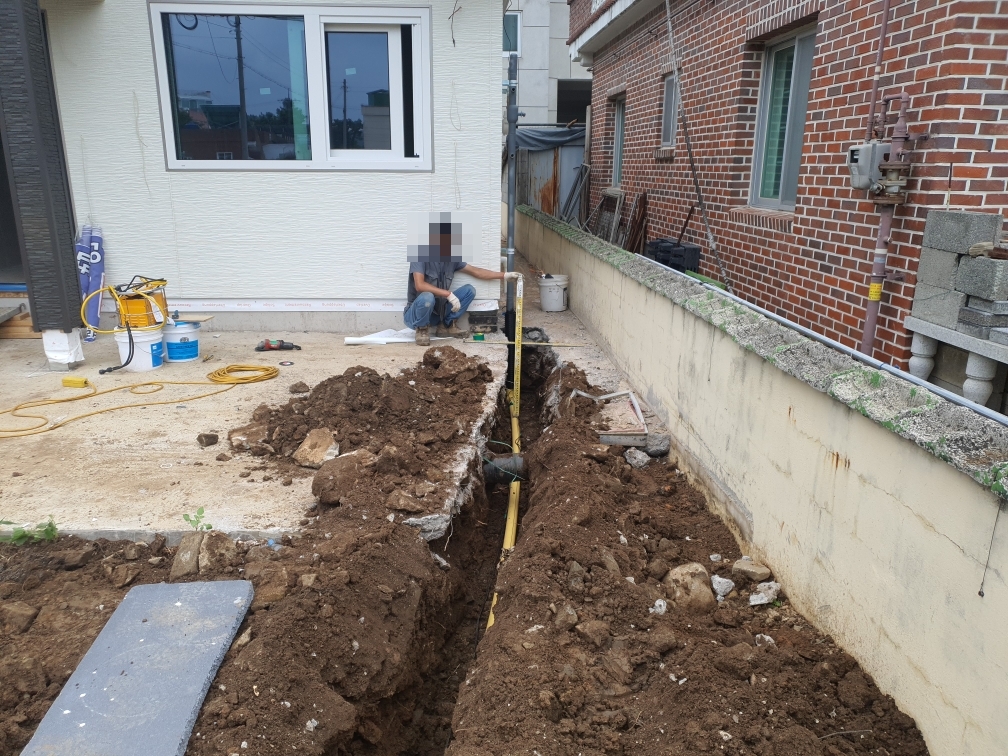 ▶상수도신청: 기초콘크리트 타설을하고 양생을 하며 콘크리트위에 물을 뿌려두는 것이 좋다. 그래야 갈라짐(크랙)이 안가고 잘 마른다. 제일 먼저 기초콘크리트를 타설하고 양생시 물이 필요하기에 상수도신청을 미리 해두는 것이 좋다.