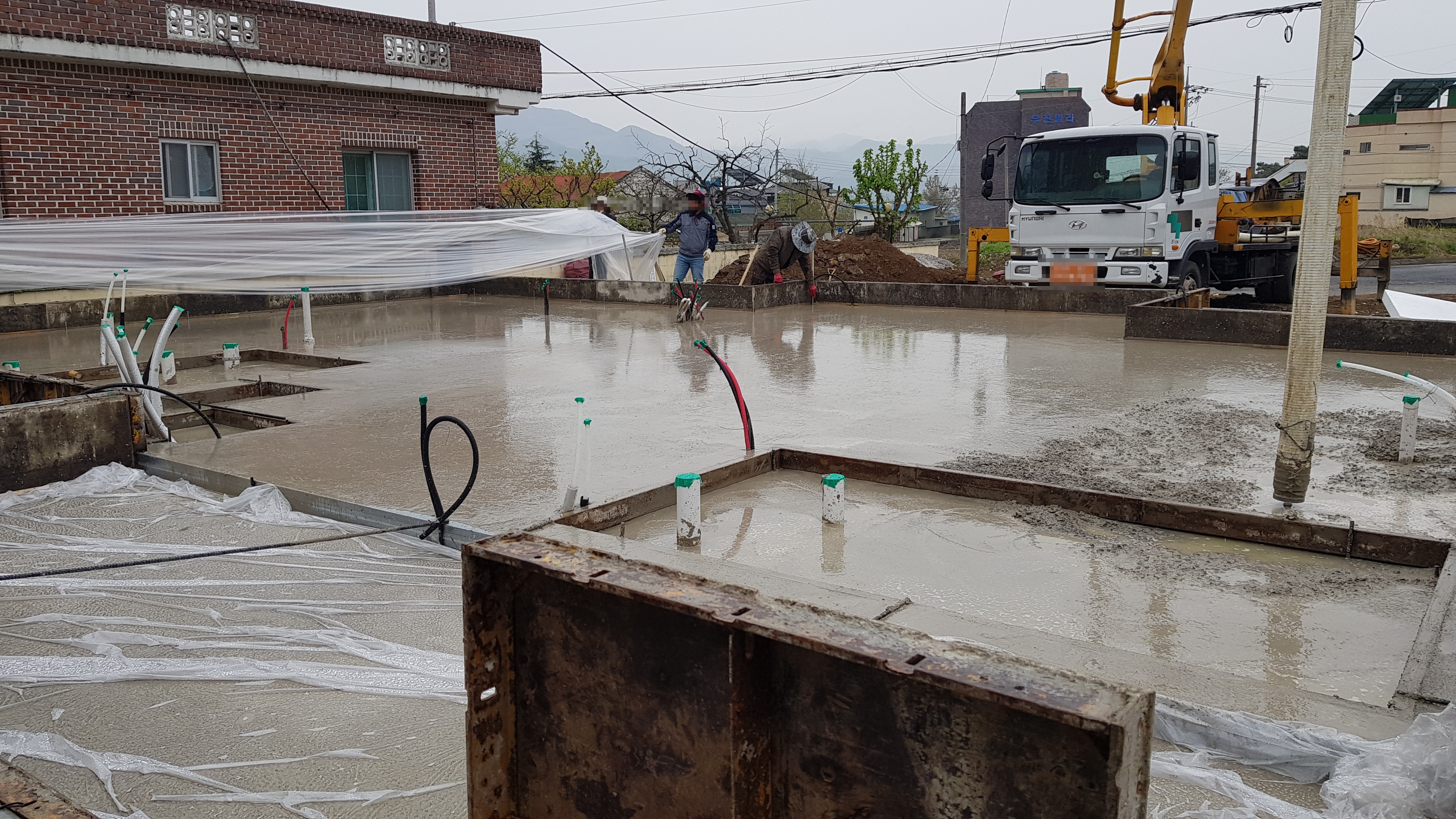 ▶상수도신청: 기초콘크리트 타설을하고 양생을 하며 콘크리트위에 물을 뿌려두는 것이 좋다. 그래야 갈라짐(크랙)이 안가고 잘 마른다. 제일 먼저 기초콘크리트를 타설하고 양생시 물이 필요하기에 상수도신청을 미리 해두는 것이 좋다.