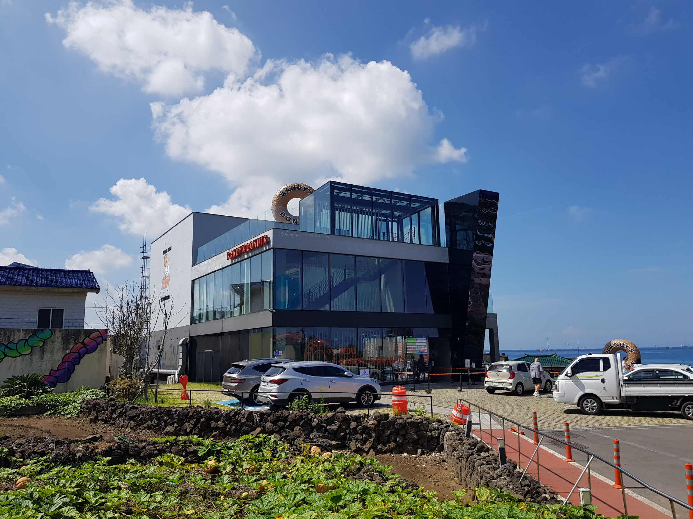 건물이 상당히 크다. 그리고 건물 옥상에는 거대한 도넛 모양이 올려져 있어서 멀리서도 눈에 띈다. 피즈애월에서 햄버거를 먹을 때도 건물이 한눈에 들어왔고 검색해서 찾아보고 들리게 되었다.