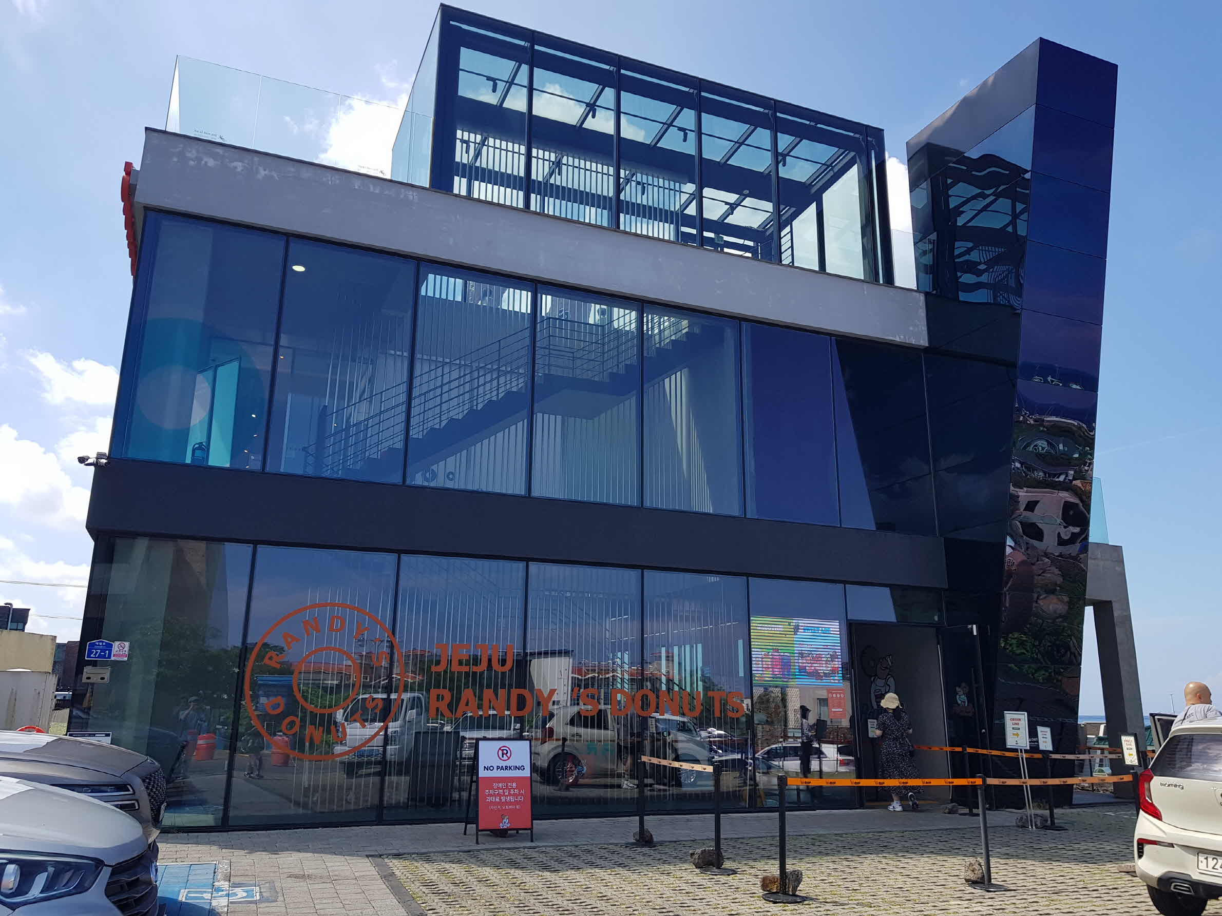 건물 바로 앞에도 주차장이 있지만 그리 넉넉한 공간은 아니다. 하지만 바로 아래쪽으로 한담산책로 주차장이 있으며 랜디스 도넛 방문자는 이곳에 1시간 무료 주차를 할 수 있다.