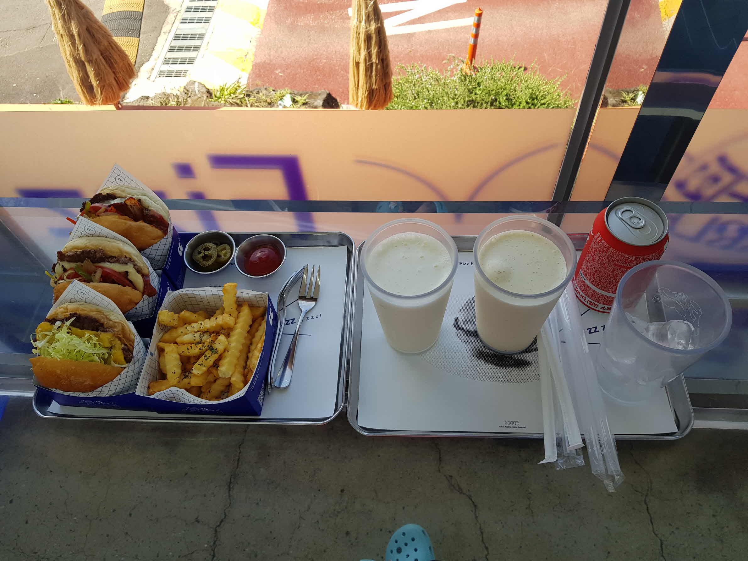 땅콩 쉐이크는 시윈 하고 고소한 맛이 좋기는 했지만 담백한 버거와 함께 먹기에는 다소 부담스러움이 있었다. 청량하고 깔끔한 콜라가 함께 먹기에는 더 좋았다.