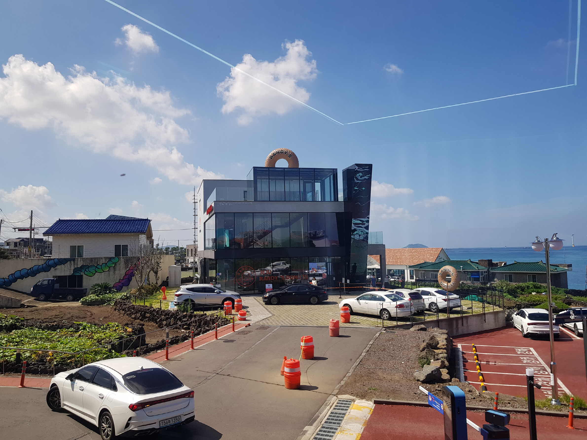 창가 테이블에 앉으니 애월 바다와 랜디스 도넛 가게가 보인다. 유명한 두 음식점이 이렇게 가까이 있으니 맛집을 찾아다니는 식객들이 좋아할 만한다.