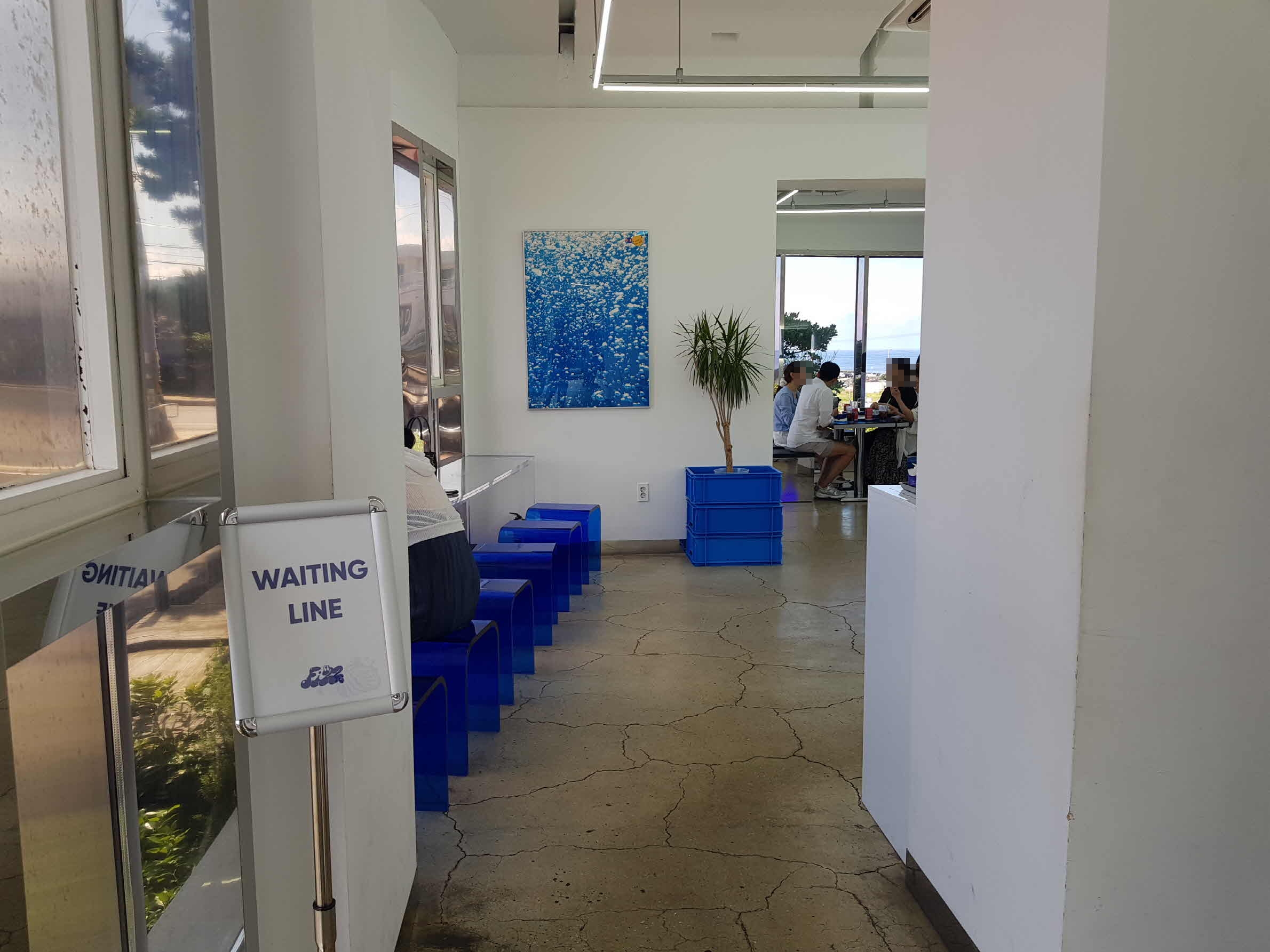 실내가 그리 넓은 편이 아니기에 테이블 수도 많지 않다. 방문하는 사람이 많은 낮 시간에는 테이블 자리가 날 때까지 이곳 대기라인에서 기다려야 한다.