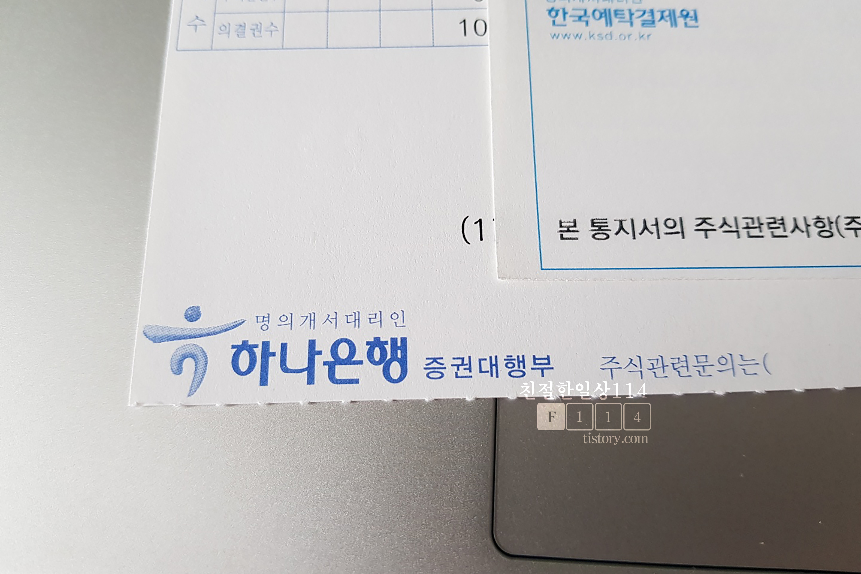 주식을 하는 이라면 주주총회참석장이라던지 배당금 지급 내역서, 유상증자, 무상증자 등과 같은 보유한 주식 관련 알림 우편을 받아 봤을 것이다. 필자의 집에도 3월부터해서 이번달까지 계속해서 주식 관련 우편물이 날아들고 있다.