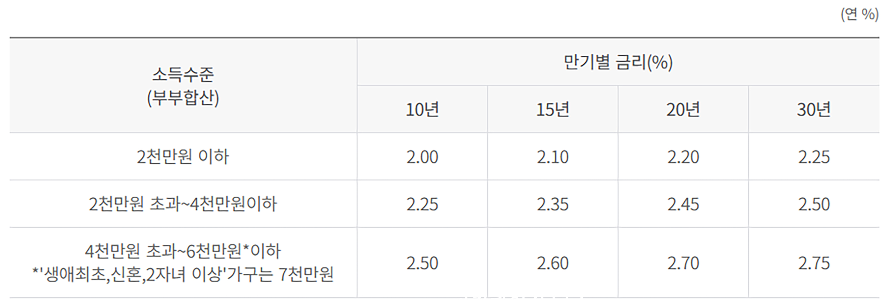 [신혼부부 생애최초 주택구입의 경우 디딤돌 대출 이자율표]