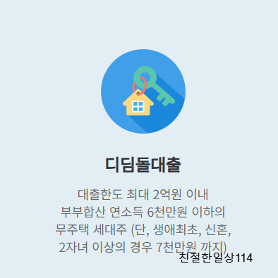 | 주택도시기금 주택담보대출 - 내집마련디딤돌대출 (정부지원 3대 서민 구입자금 통합 저금리 대출 / 대출금리 연 2% ~ 연 2.75%) (0) | 2022.01.11 |