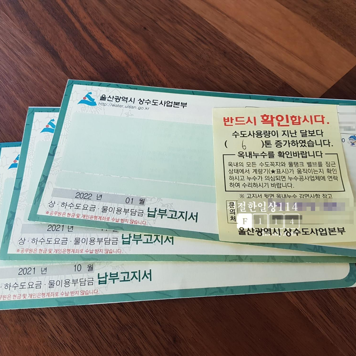 지금까지 납부고지서를 우편으로 받아서 납부를 해왔었다. 그러다보니 지난달에는 납부고지서가 바람에 날아갔는지 분실되어 체납된적이 있어 연체료를 내야했다. 이번에 수도요금 계산을 해보며 궁금한점이 있어서 상수도사업본부 콜센터에 전화에 물어보며 자동이체로 납부방법을 변경했다.