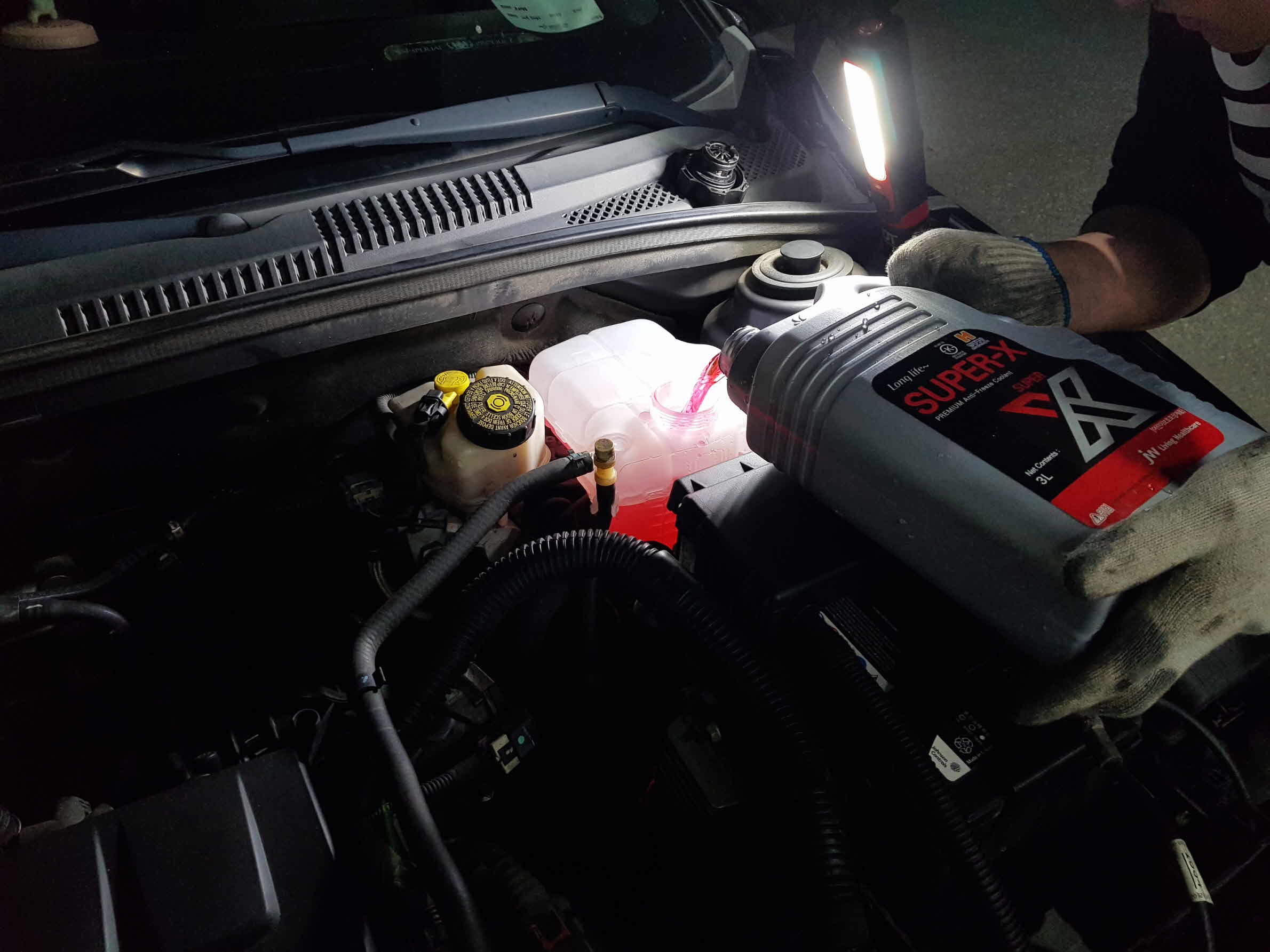 교체한 부동액통에 부동액을 부어준다. 대략 4L 정도 들어간다고하는데 새 통으로 교체했기 때문에 조금 더 보충해 준다.