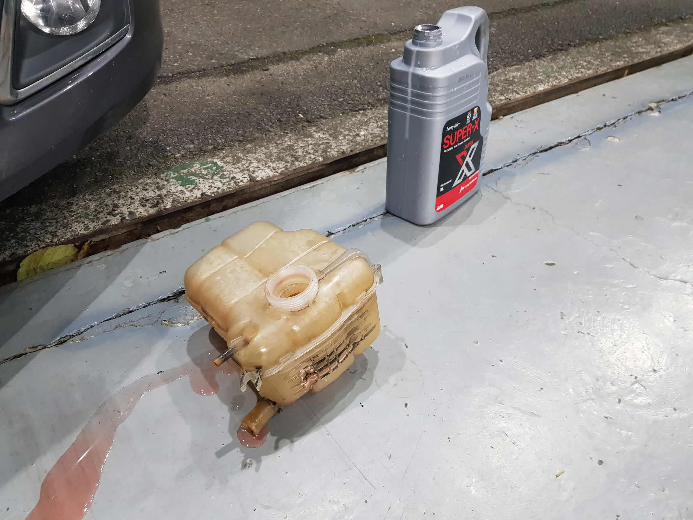 수리를 하며 설명을 들어보니 부동액통이 깨지거나 금이 가서 새는 경우 부동액이 부족해져 엔진을 식혀줄 수가 없게 된다. 이는 엔진 과열로 이어지고 그러면 엔진과열 경고등이 뜨게 된다.
