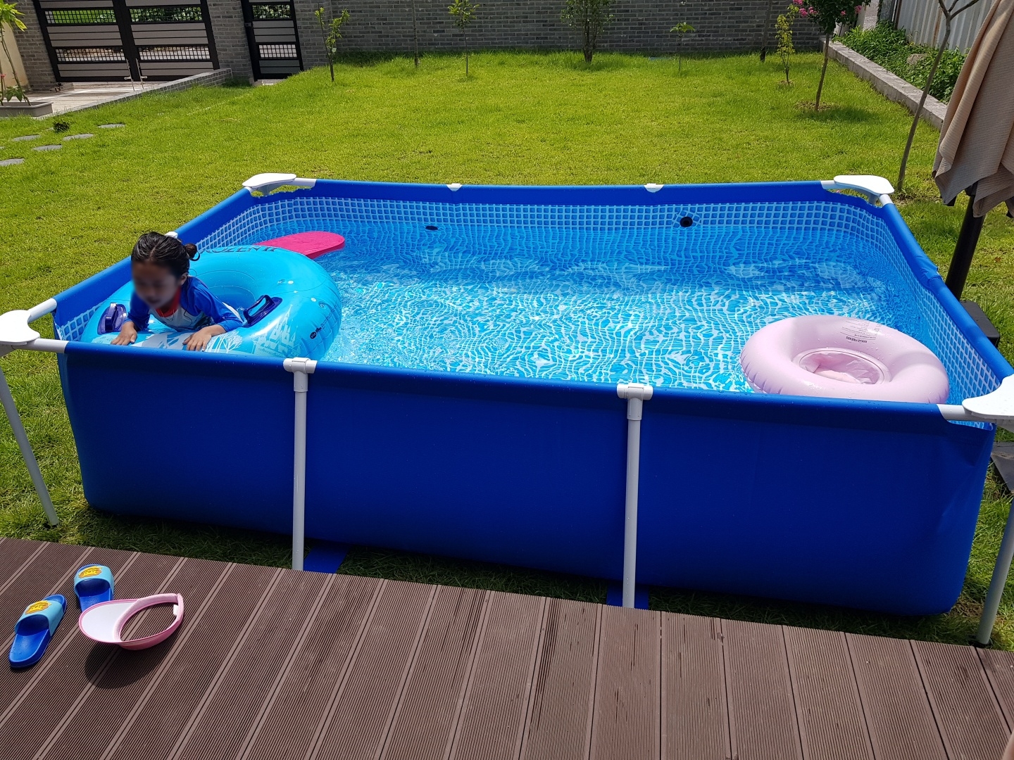 수영장 구매한 가격 대비해 제품 질도 좋고 잘 사용하고 있다. 소위말해 뽕을 뽑을 정도로 물놀이를 하고 있다. 가격이 많이 비싸지 않아 몇번 쓰더라도 일단 사서 써보자는 생각이었는데 두고두고 쓰게 될 것 같다.