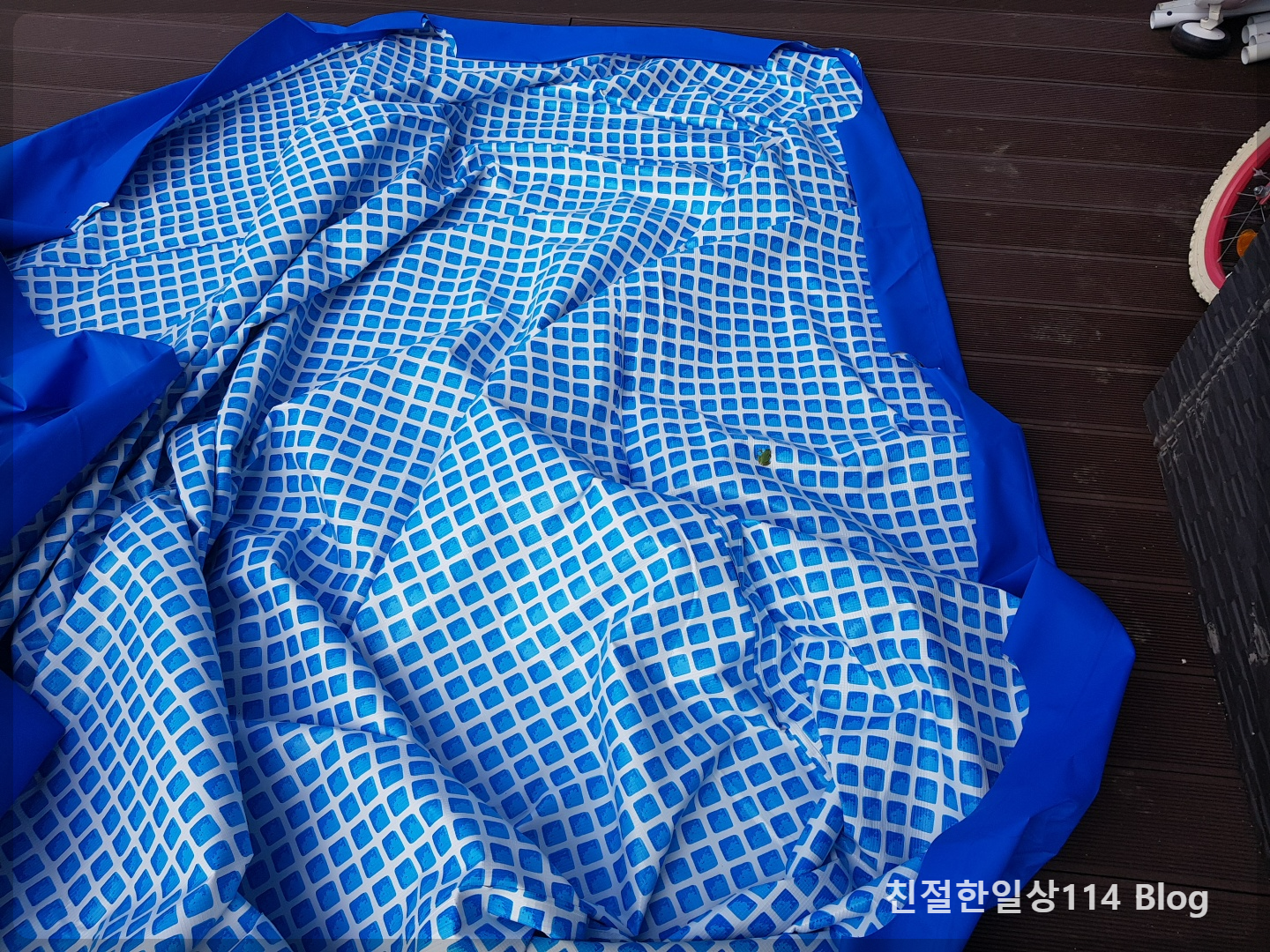 채웠던 물을 다 빼고 조립했던 역순으로 해체를 한다. 그리고 수영장 천만 데크쪽으로 옮겨 말려준다.