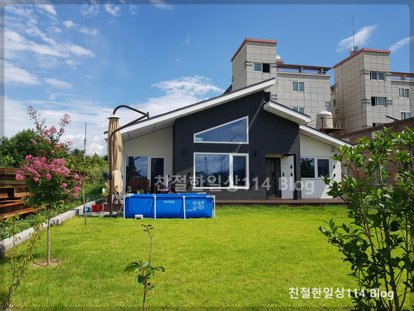 필자는 수영장을 데크 위쪽에 설치하려다가 시공사에 데크 프레임이 어느정도 무게까지 감당 할 수 있는지 문의한 뒤 마당당에 설치하는 것으로 .설치장소를 변경했다.