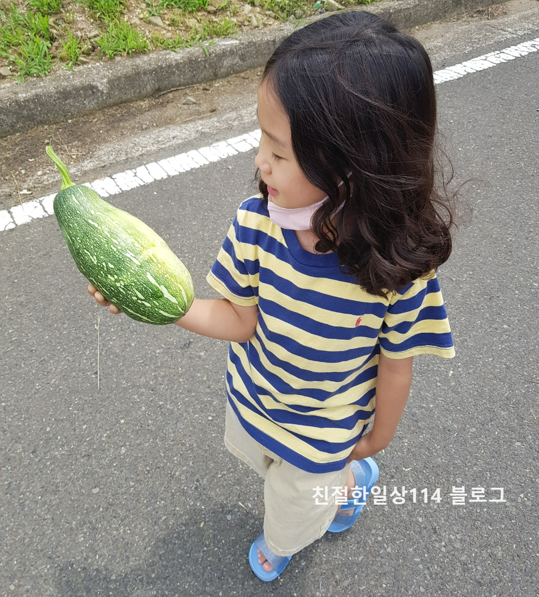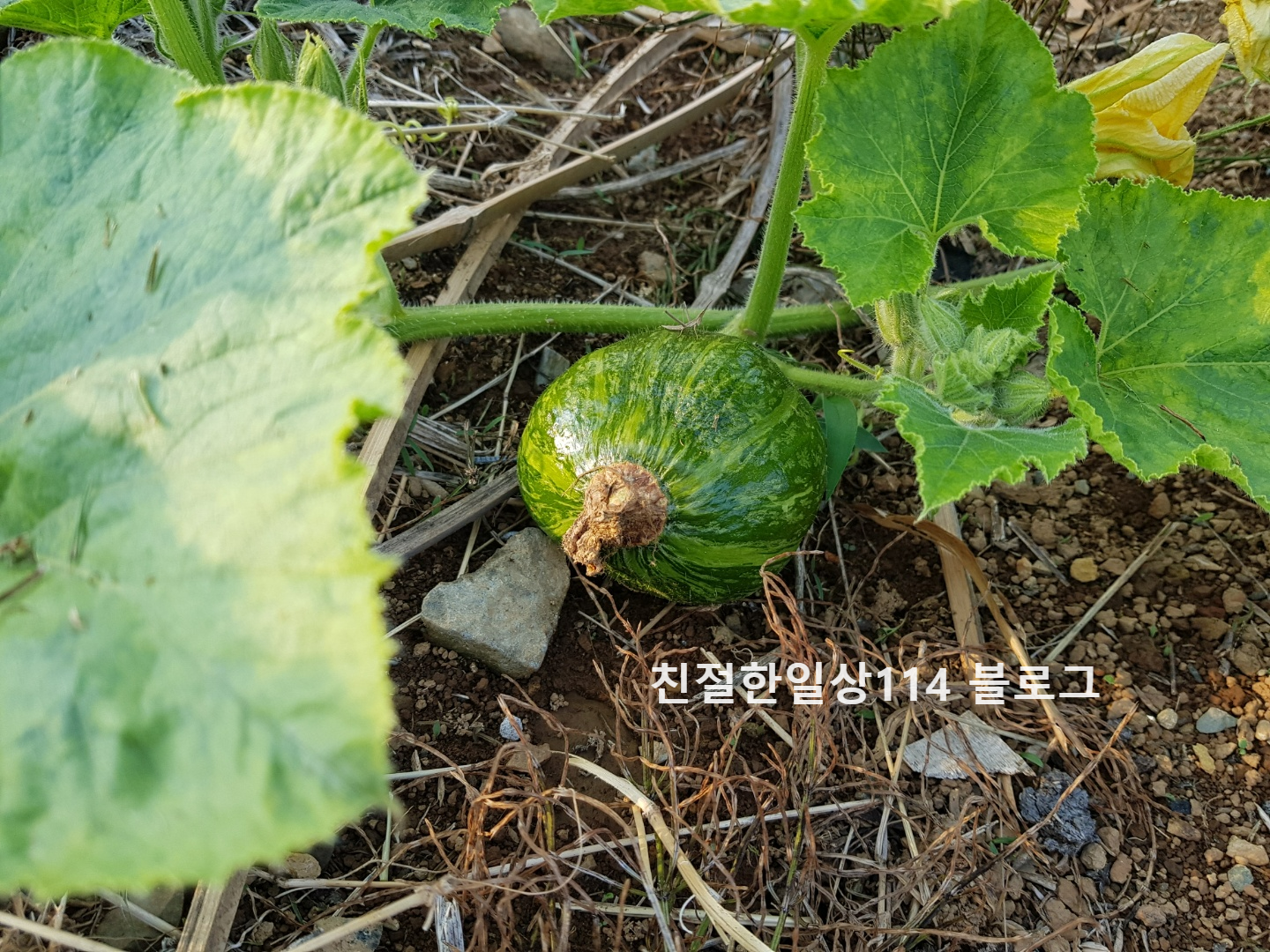 금방금방 자라는게 신기하기도 하고 그대로 두면 점점 자라서 먹을게 많아 질것 같아 더 키우려고 했는데 이웃집에서 더 두면 맛이 없다고 바로바로 따서 먹어야 한다고 일러준다. 호박이 많이 크기전 겉에 윤기가 흐를때가 맛있다는 것이다.