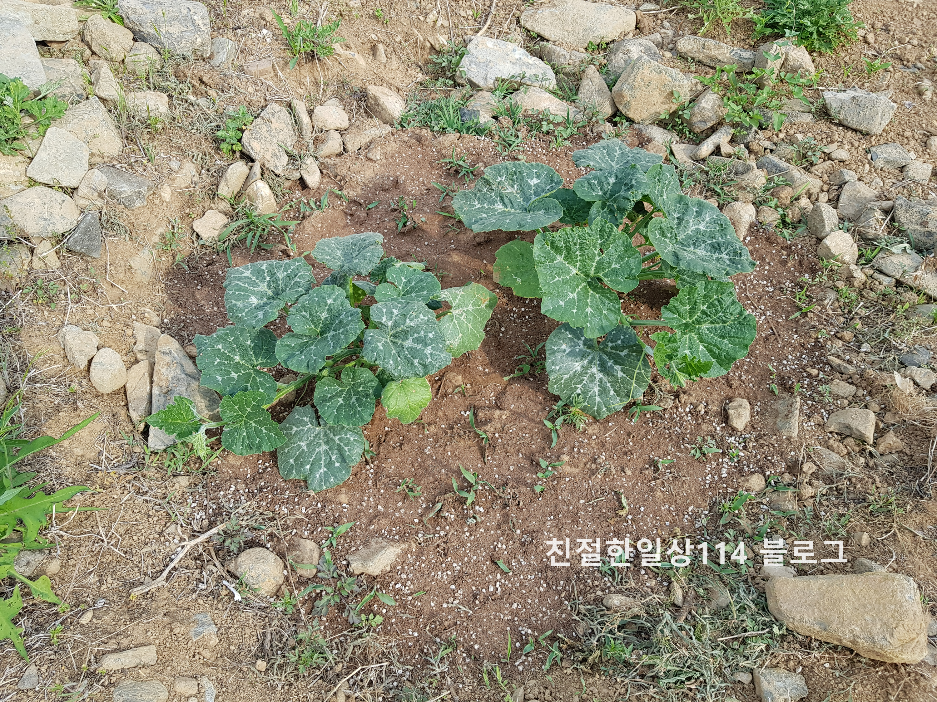 올 봄, 4월 중순 호박구덩이를 파서 모종을 심었다. 원래는 호박씨를 땅에 심으려고 했는데 시기를 놓쳐서 이웃집에서 키운 모종을 얻어다가 심게 되었다.