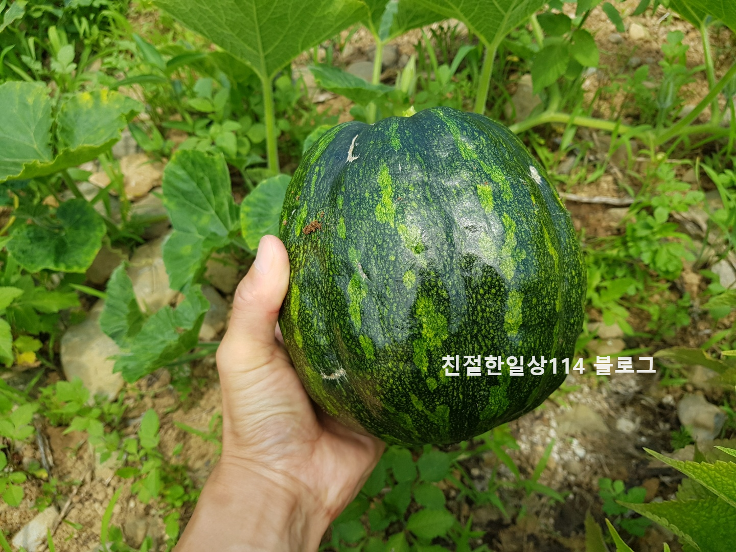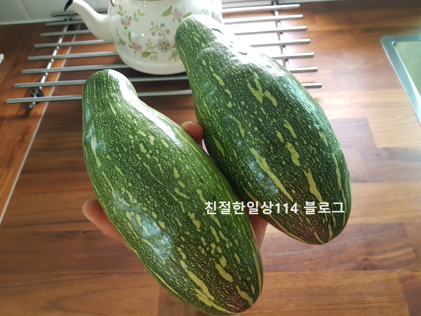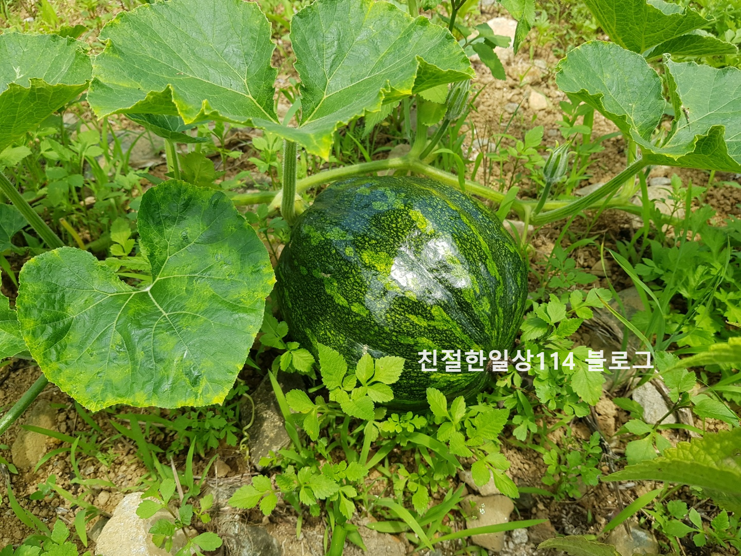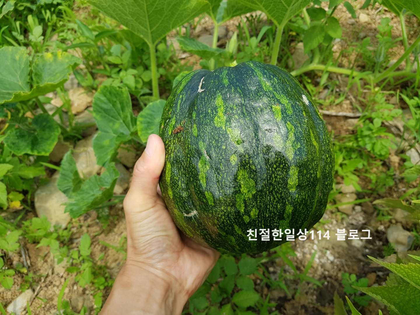 금방금방 자라는게 신기하기도 하고 그대로 두면 점점 자라서 먹을게 많아 질것 같아 더 키우려고 했는데 이웃집에서 더 두면 맛이 없다고 바로바로 따서 먹어야 한다고 일러준다. 호박이 많이 크기전 겉에 윤기가 흐를때가 맛있다는 것이다.