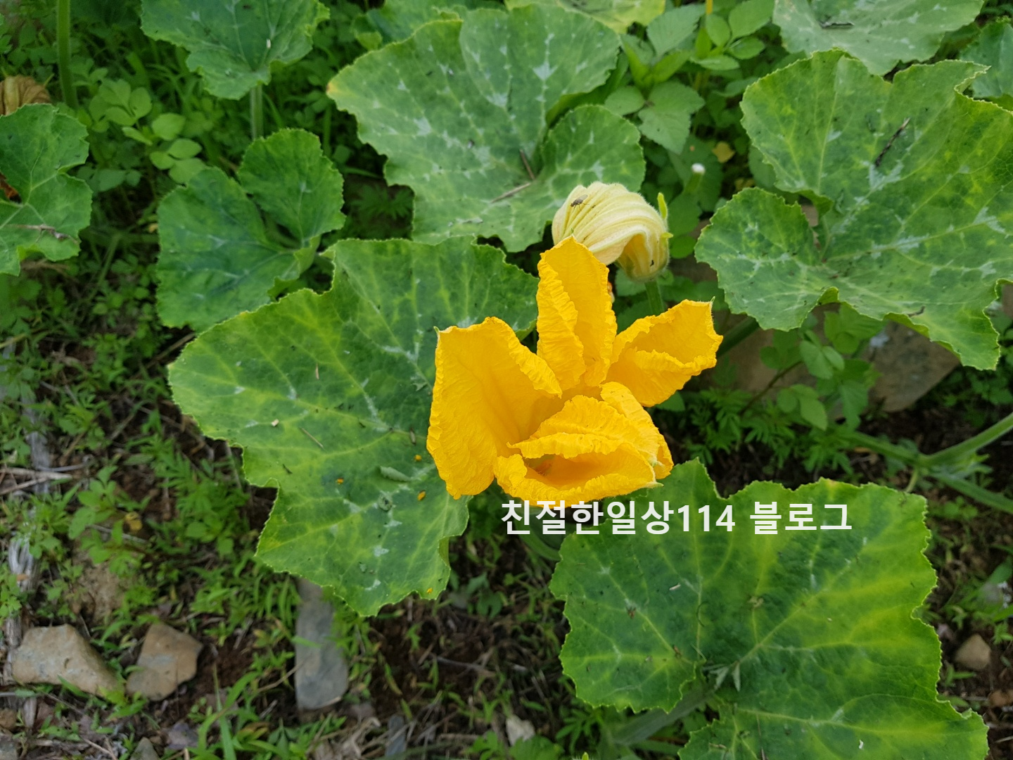 오전에 본 노랗게 활짝핀 호박꽃이 저녁때 보니 오므려져 있어서 시들은 것인줄 알았다. 그런데 다음날 아침에 보니 다시 꽃이 활짝 피어있는 것이었다.