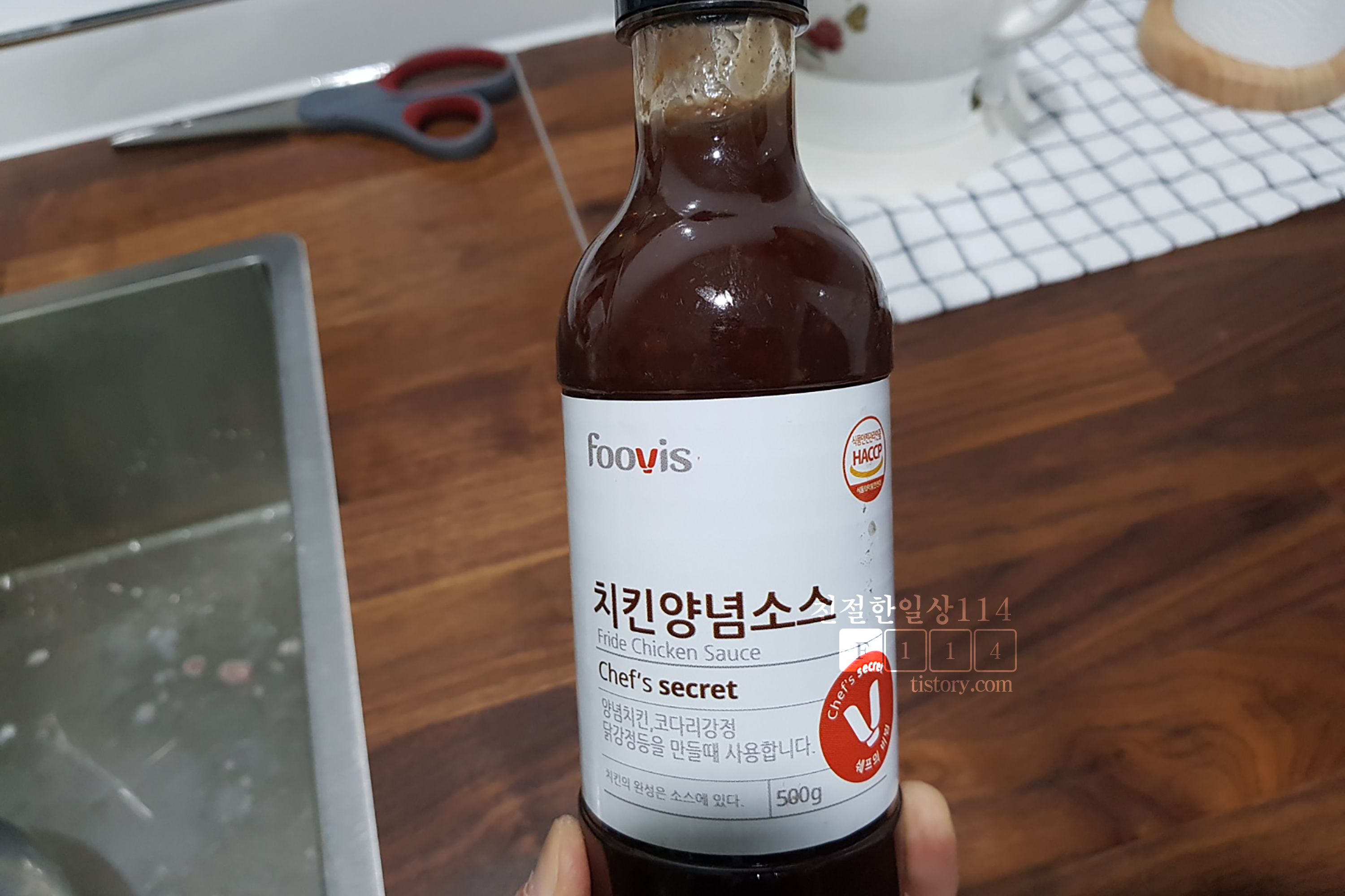 오븐에서 구워진 닭을 큰 그릇에 옮겨 담는다. 그리고 마트에서 사온 치킨양념소스를 그릇에 붓는다. 큰 마트가 아니라서 치킨양념소스 종류가 사진에 한가지 밖에 없었다. 처갓집 양념치킨맛을 원했는데 그렇지 못하다! 좀더 매콤달콤한 소스를 찾아봐야 겠다.