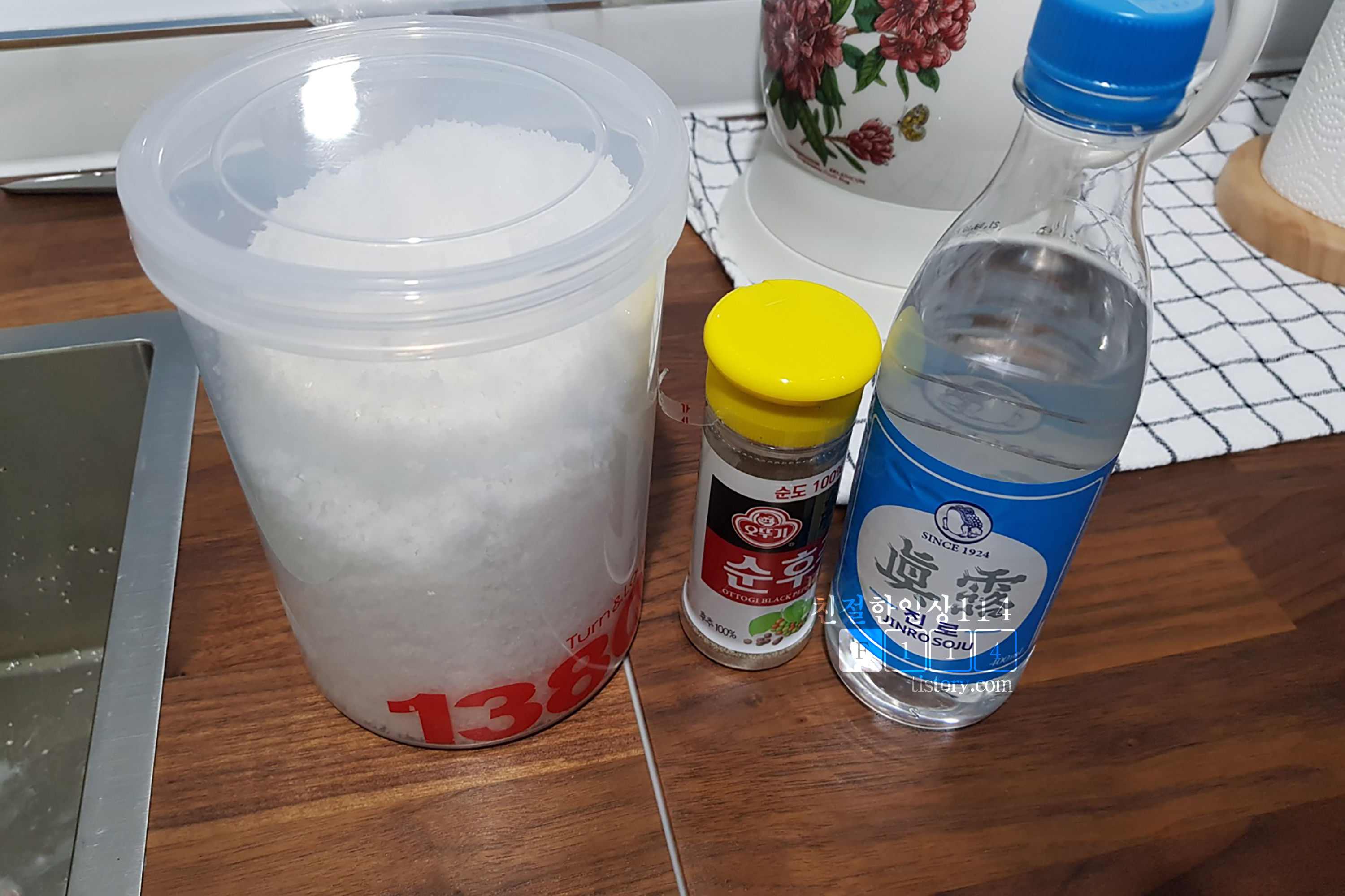 맛술이 없어서 대신 소주를 사용한다. 다진마늘은 얼려둔 한토막을 넣었는데 한스푼이 조금 넘는 양이다. 그리고 소금은 한 스푼 조금 안되게 넣었는데 나중에 맛을 보니 조금 짯다. 조금 반스푼에 간장 약간 넣으면 어떨까 싶다.