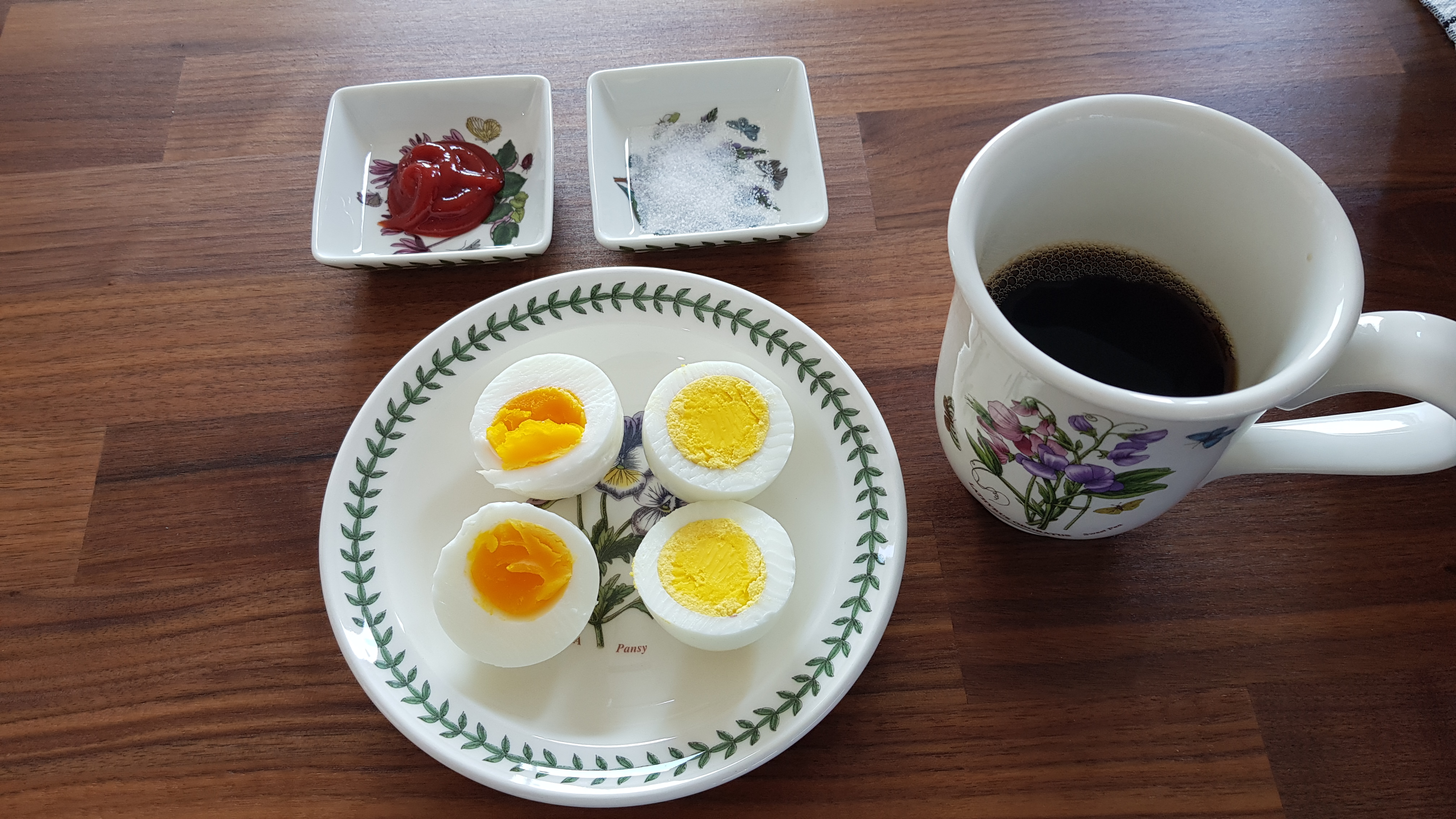 삶은 계란에는 맛소금과 케찹이 잘 어울린다.